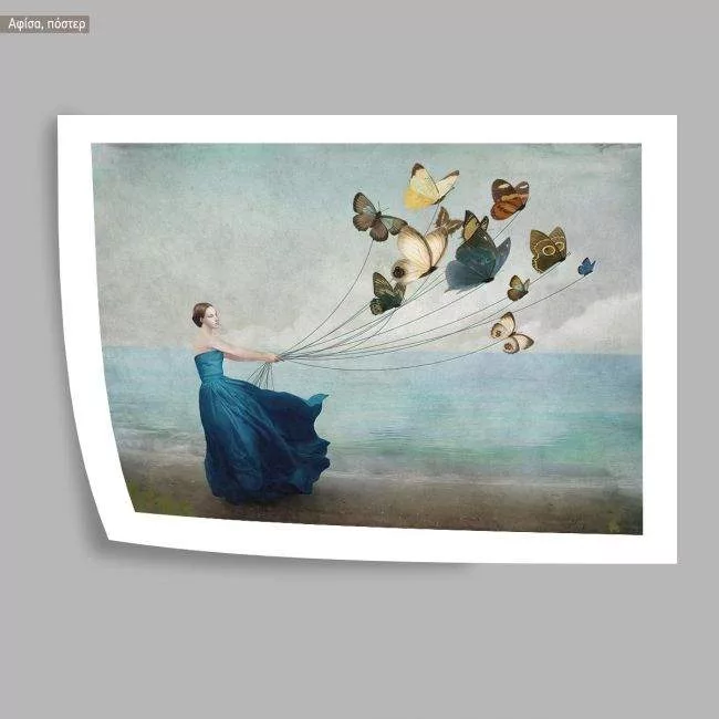 Turquoise dress with butterflies, αφίσα, κάδρο