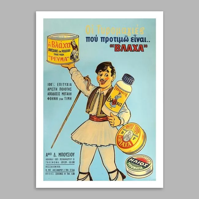 - Ανακαλύψτε την αυθεντική vintage αφίσα "ΒΛΑΧΑ", μια αναδρομή στην ελληνική διαφήμιση τυροκομικών προϊόντων.