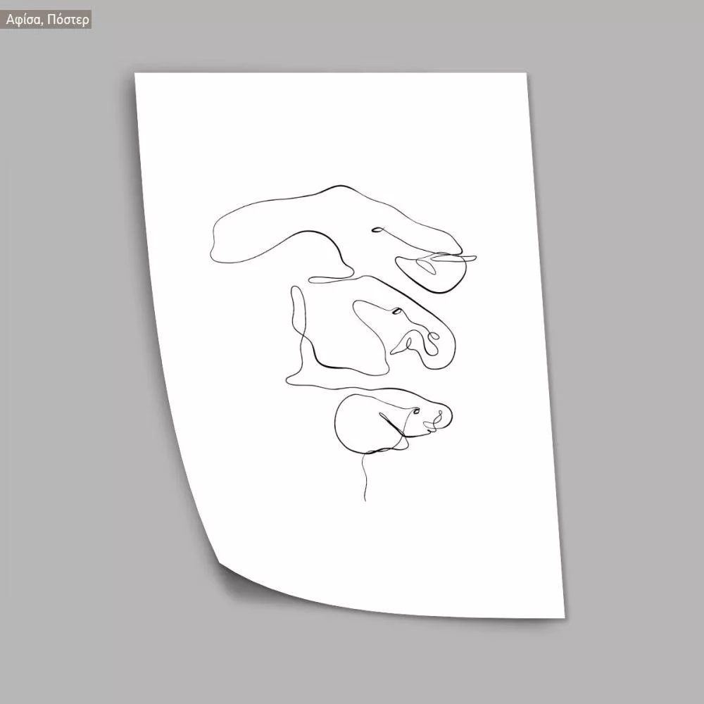 Animals line art, elephant family, αφίσα, κάδρο