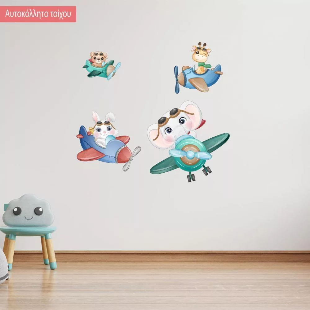 Αυτοκόλλητα τοίχου παιδικά Ζωάκια με αεροπλανάκια