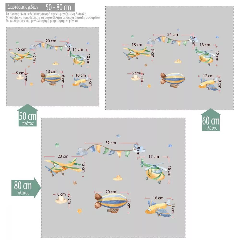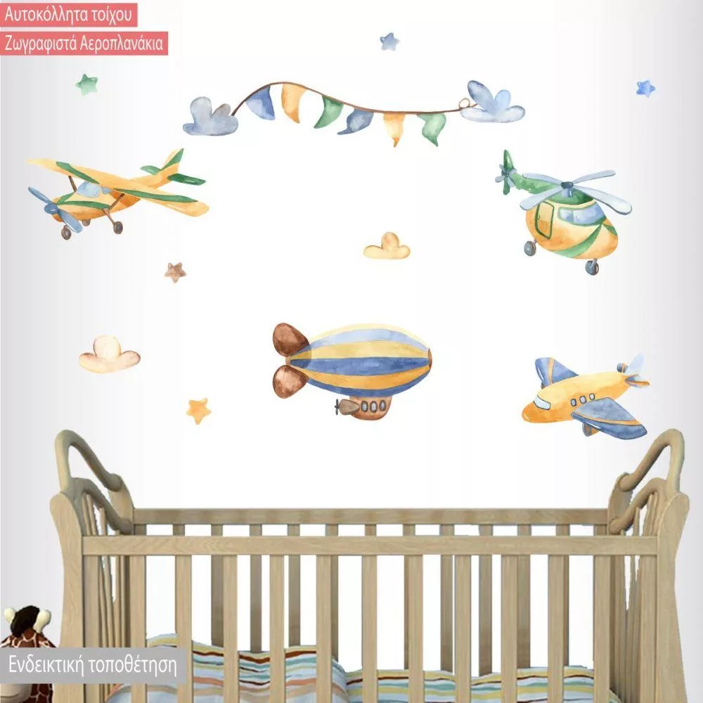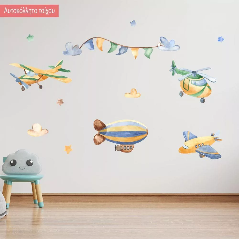 Αυτοκόλλητα τοίχου παιδικά Ζωγραφιστά αεροπλανάκια