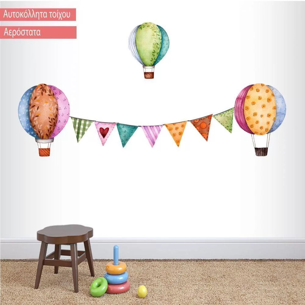 Αυτοκόλλητα τοίχου παιδικά Αερόστατα με σημαιάκια watercolor