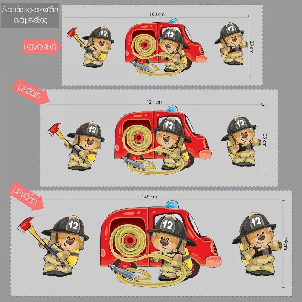 Αυτοκόλλητα τοίχου παιδικά Αρκουδάκια πυροσβέστες