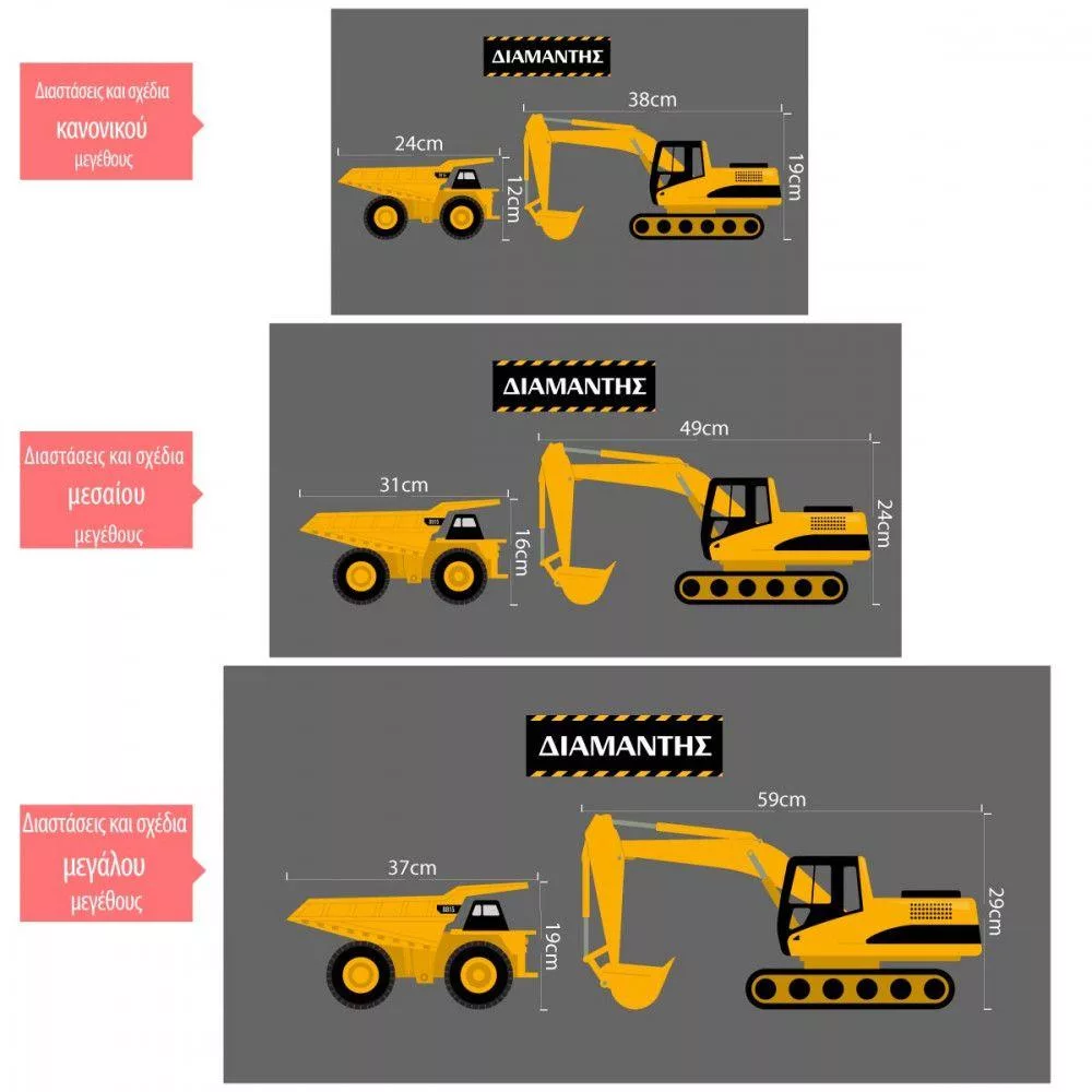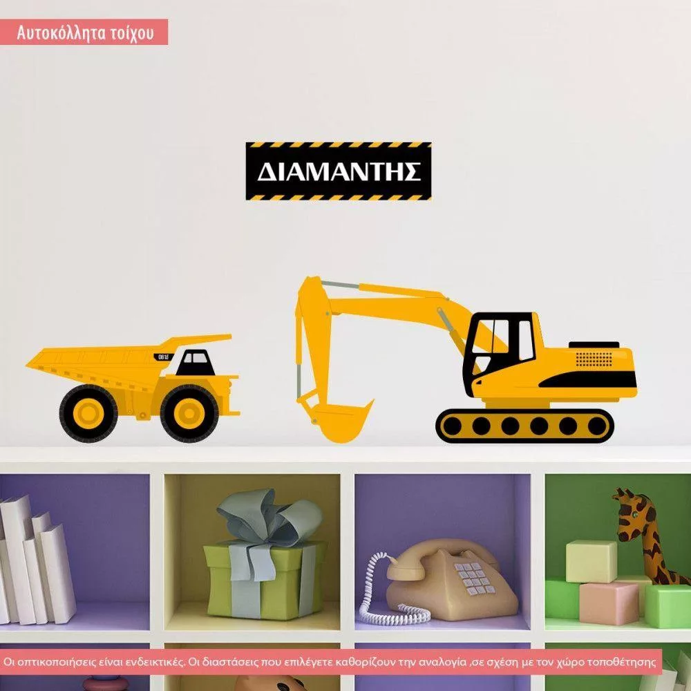 Αυτοκόλλητο τοίχου φορτηγό και εκσκαφέας με όνομα, Εργοτάξιο