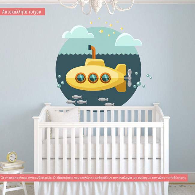 Αυτοκόλλητα τοίχου παιδικά Κίτρινο υποβρύχιο