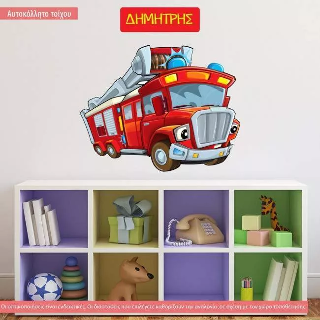 Αυτοκόλλητο τοίχου Πυροσβεστικό όχημα cartoon