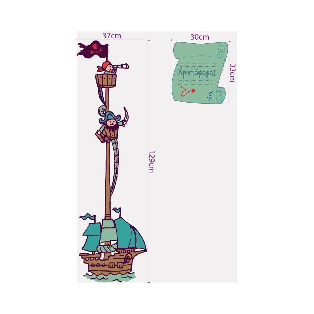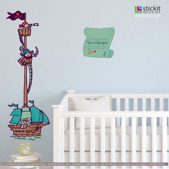 Αυτοκόλλητο τοίχου καράβι πειρατές και όνομα. Πρόσω ολοταχώς!