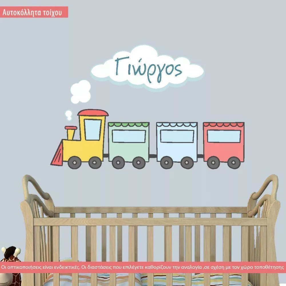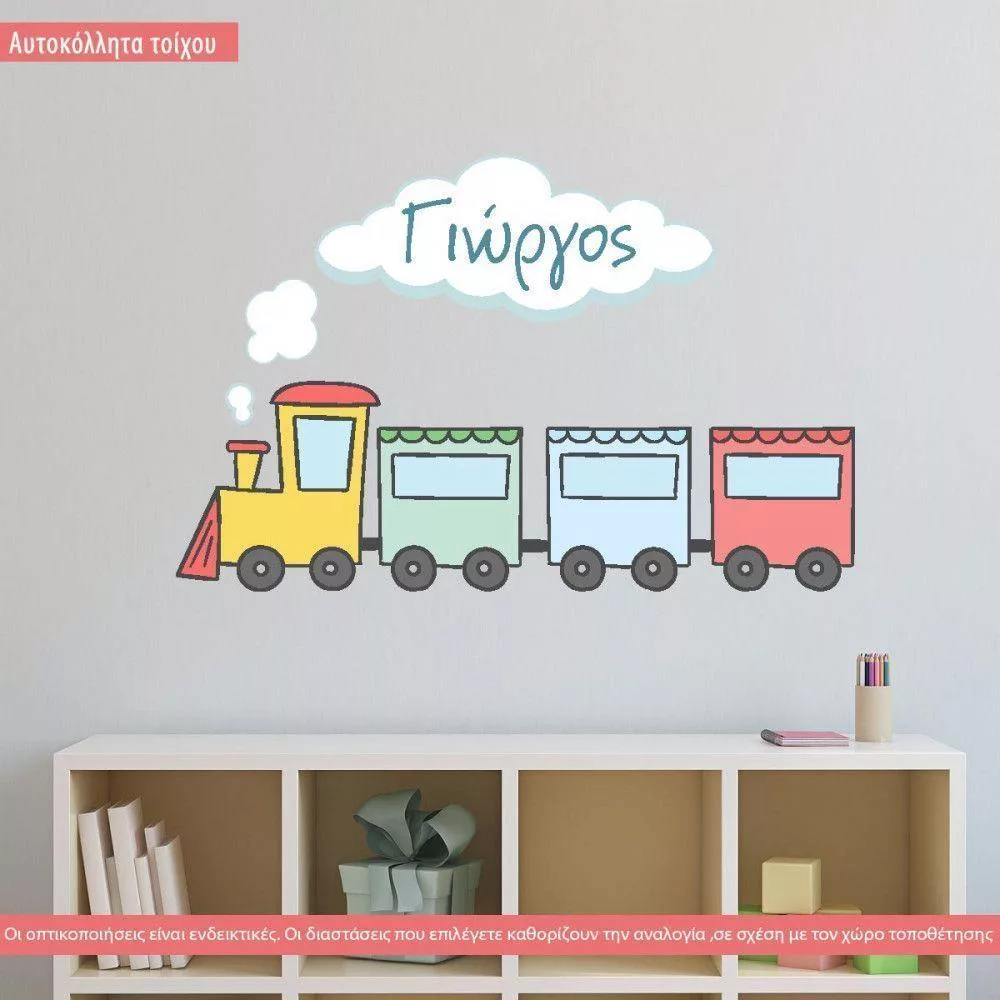 Αυτοκόλλητα τοίχου παιδικά Χαρούμενο τρένο, με τρένο και ζωάκια