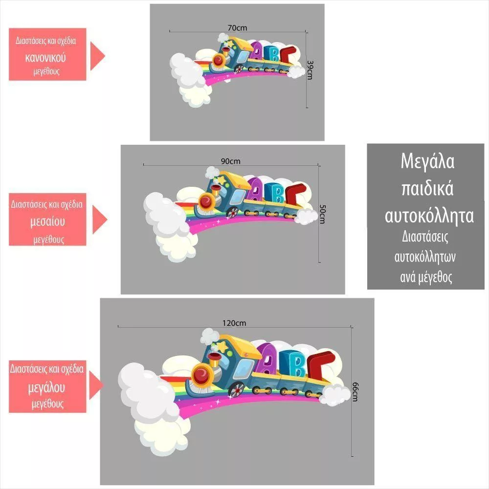 Αυτοκόλλητα τοίχου παιδικά Τρένο με γράμματα, σε ουράνιο τόξο