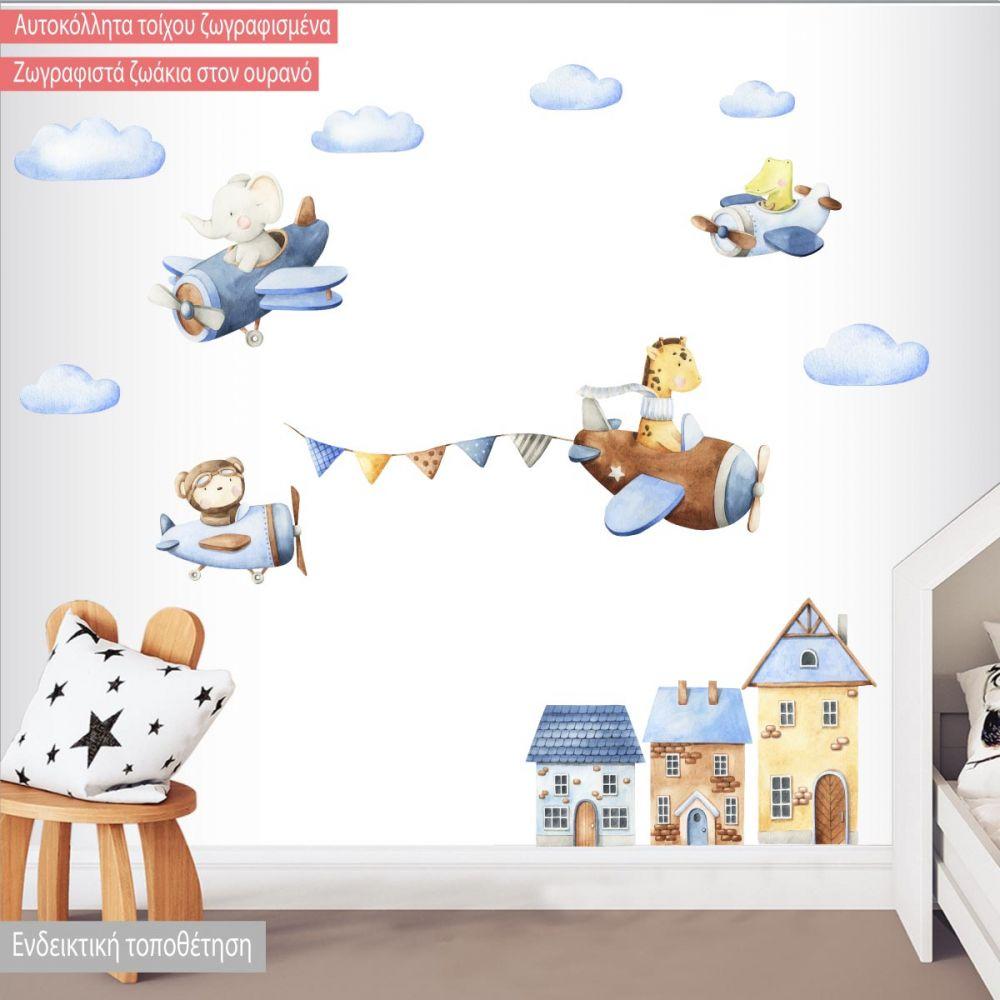 Αυτοκόλλητα τοίχου Ζωγραφιστά ζωάκια στον ουρανό