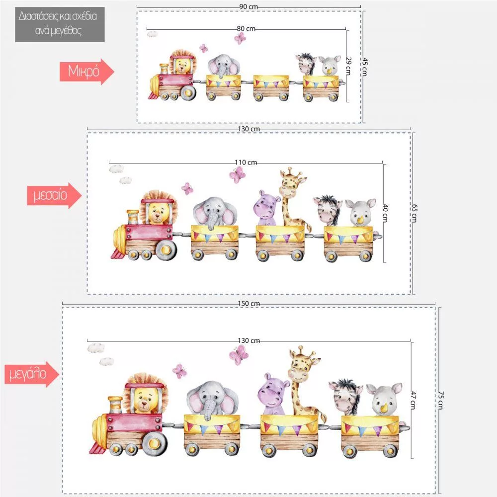 Αυτοκόλλητο τρένο και ζωγραφιστά ζωάκια