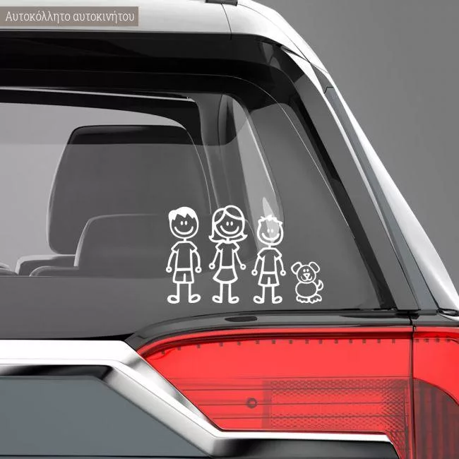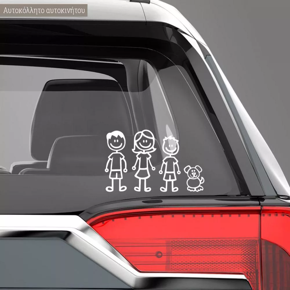 Αυτοκόλλητο αυτοκινήτου οικογένεια, μπαμπάς, μαμά, παιδιά, σκυλάκι, γατάκι