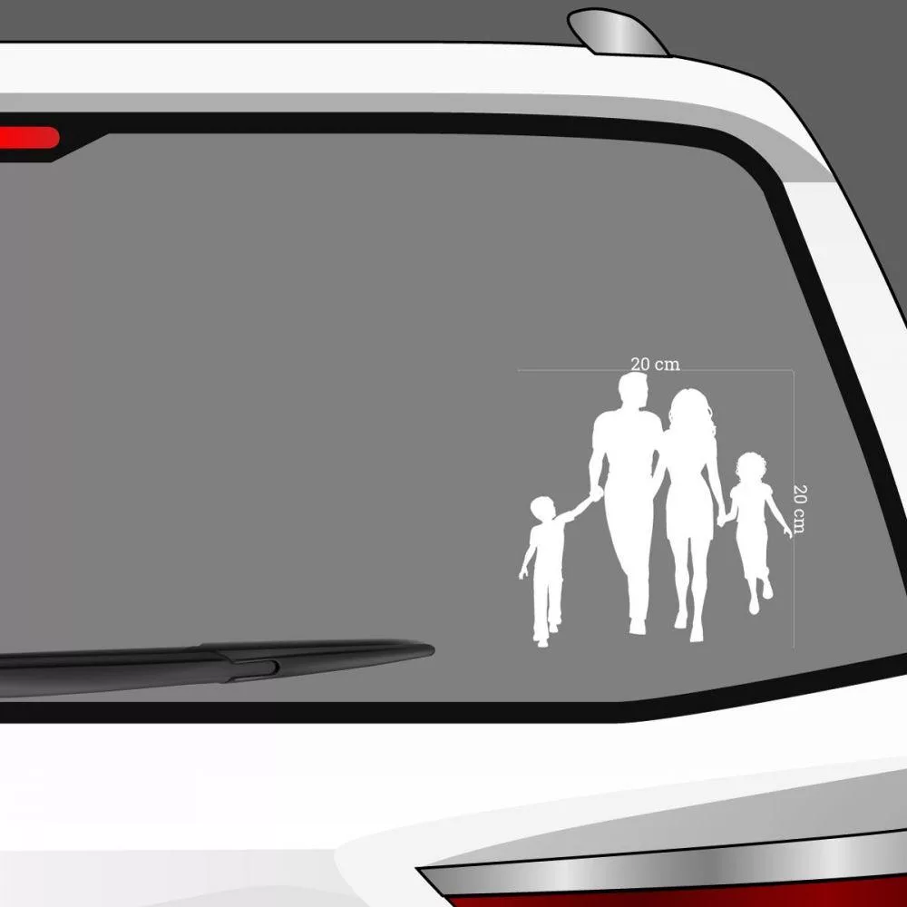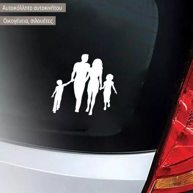 Αυτοκόλλητο αυτοκινήτου οικογένεια, σιλουέτες μπαμπάς, μαμά, παιδιά