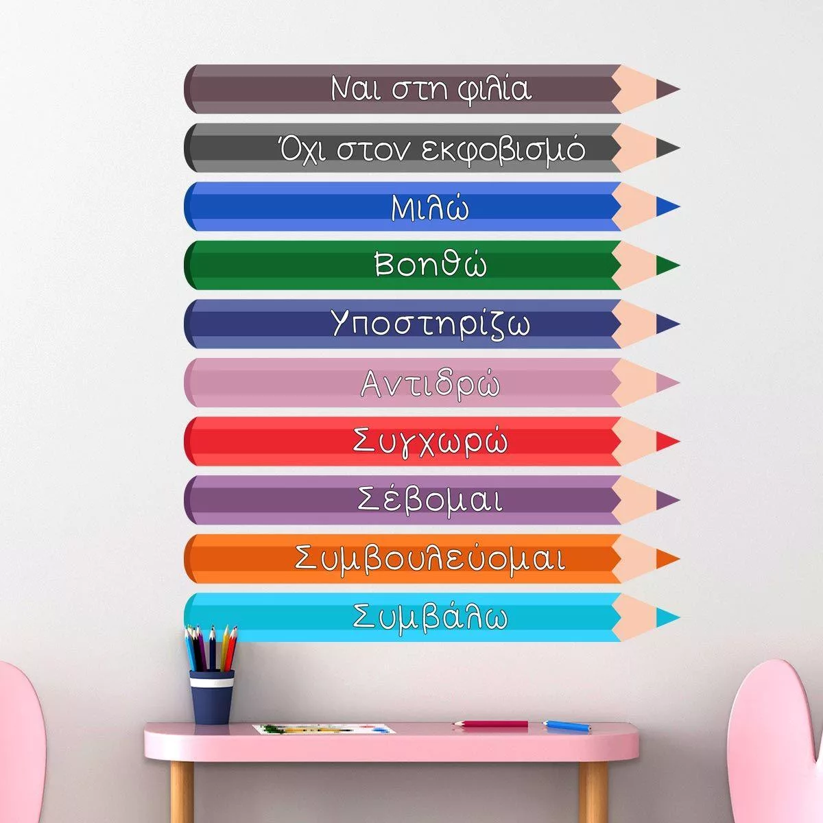 Αυτοκόλλητα τοίχου μολύβια με λέξεις