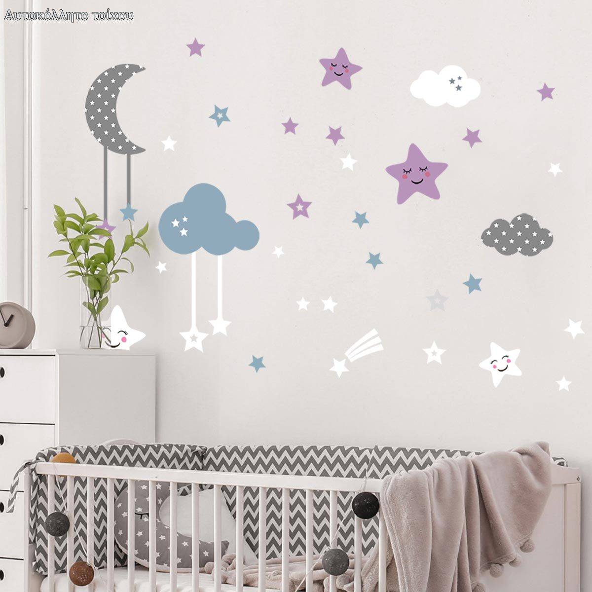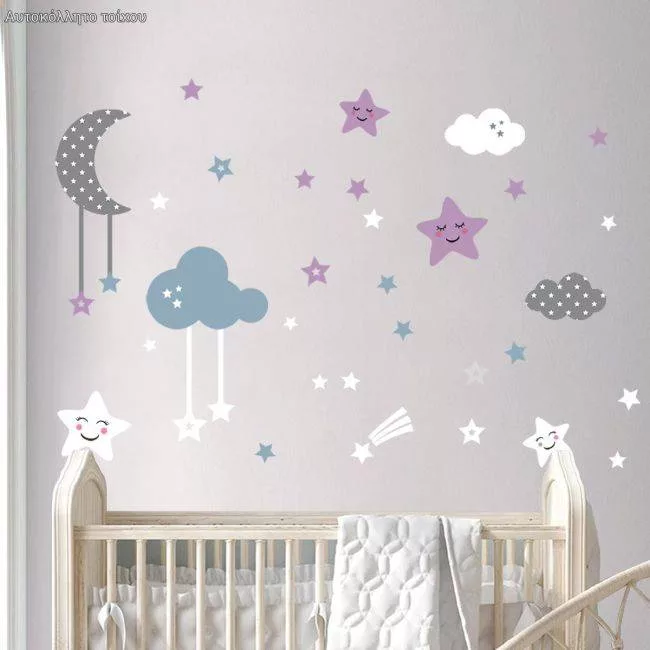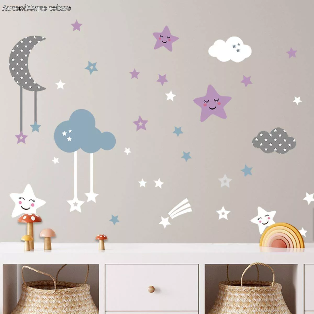 Δημιουργήστε μια μαγική ατμόσφαιρα στο κοριτσίστικο δωμάτιο με πολύχρωμα αυτοκόλλητα τοίχου σε σχήμα συννεφάκια και αστεράκια.