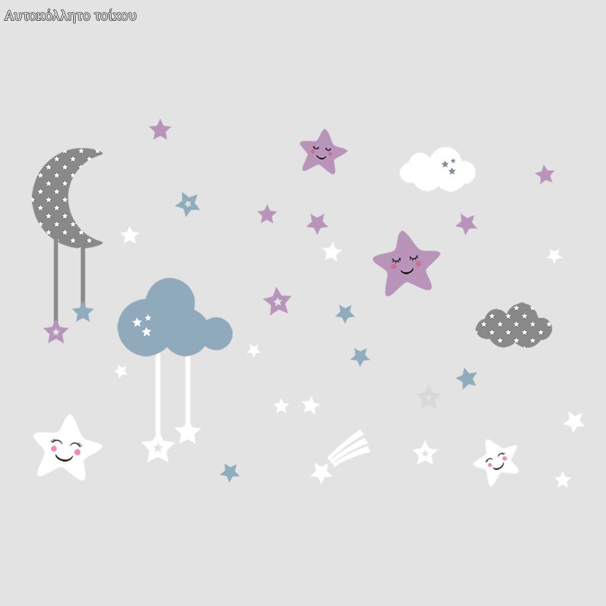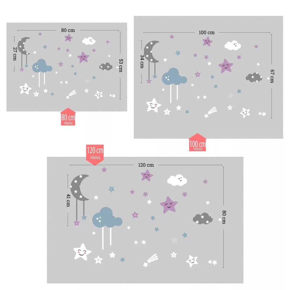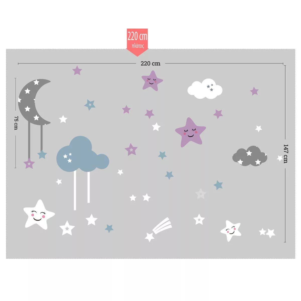 Αυτοκόλλητο τοίχου πολύχρωμα σύννεφα και αστέρια girly