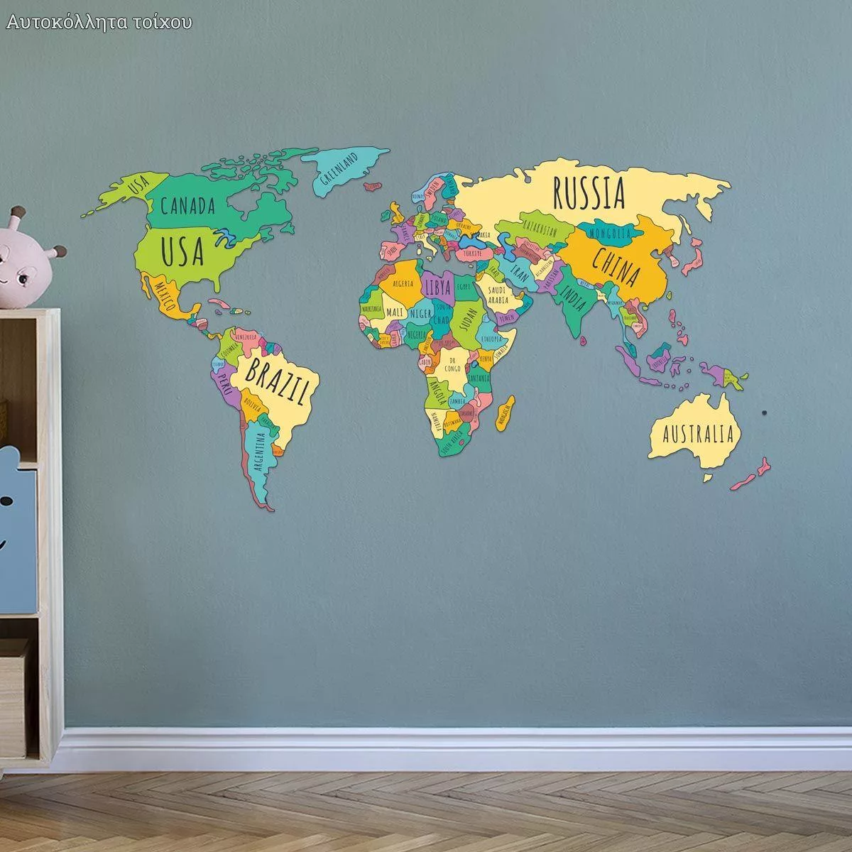 Αυτοκόλλητο τοίχου, χάρτης ονόματα χωρών