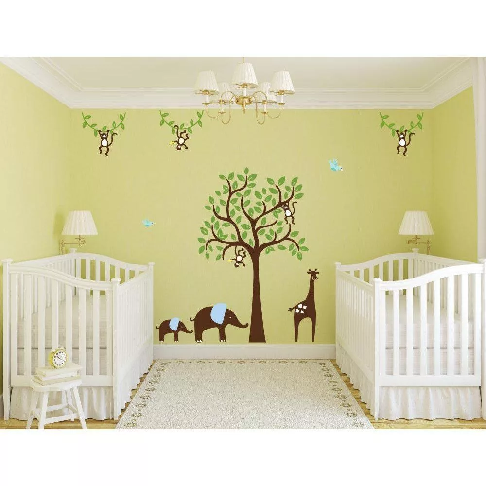 Αυτοκόλλητα τοίχου παιδικά Δέντρο με καμηλοπάρδαλη, ελεφαντάκια και μαϊμούδες, συνδυασμός 1
