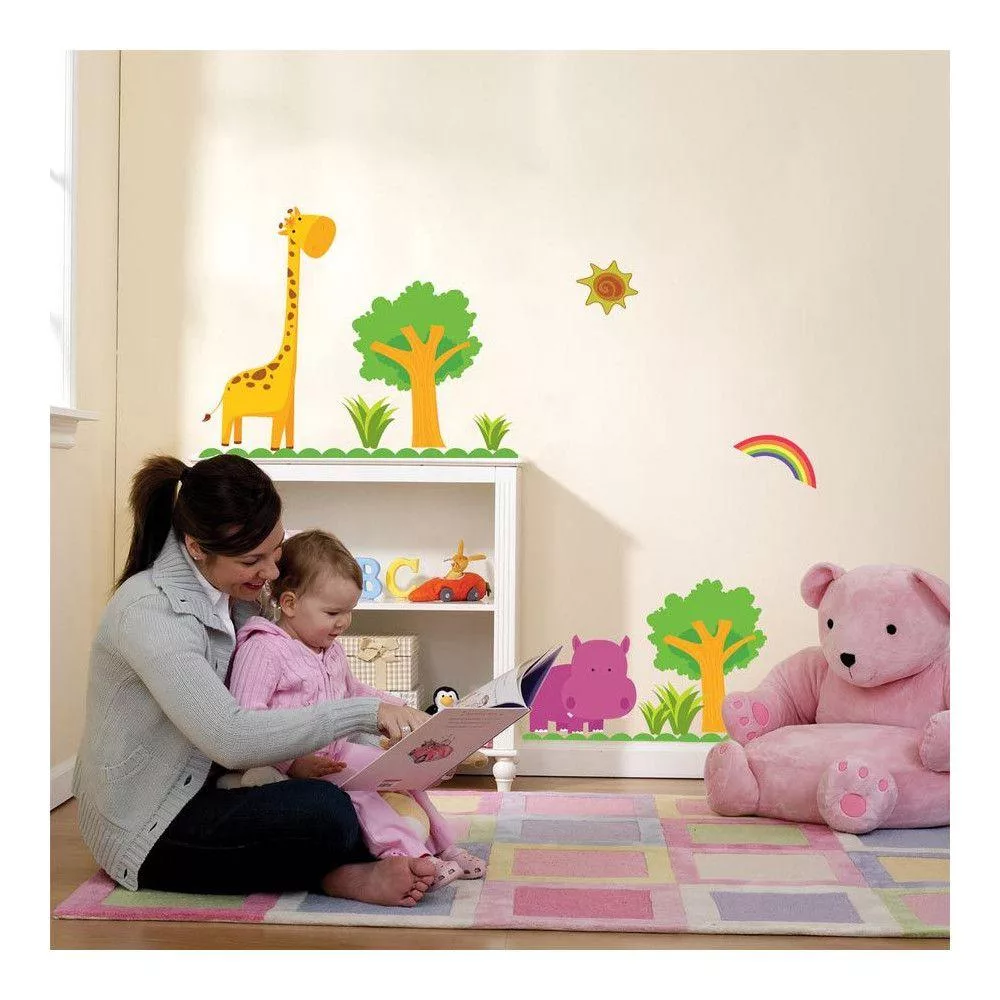 Αυτοκόλλητα τοίχου παιδικά Ιπποπόταμος και καμηλοπάρδαλη, Happy Hippo blue & Giraffe,...