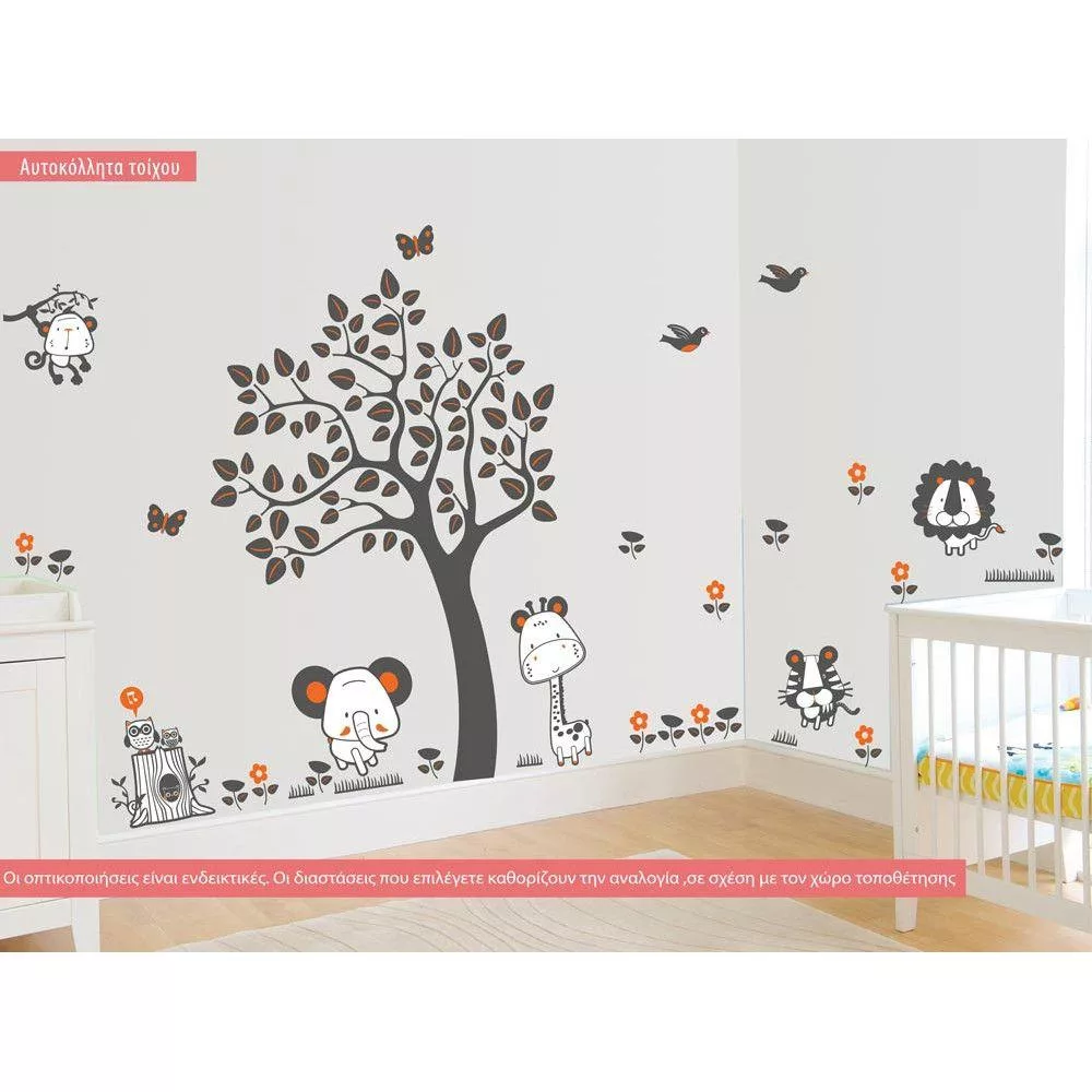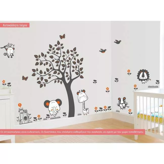 Αυτοκόλλητα τοίχου παιδικά δέντρο με ζωάκια, Jungle animals, μεγάλη παράσταση