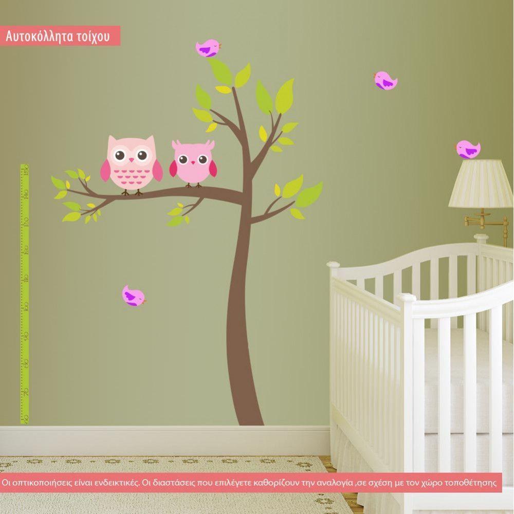 Αυτοκόλλητα τοίχου παιδικά κουκουβάγιες υψομετρητής, My owl friends