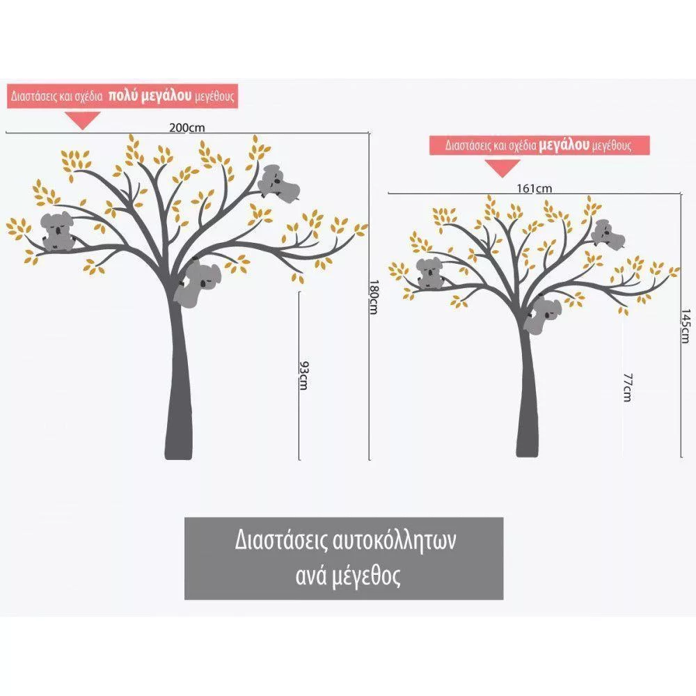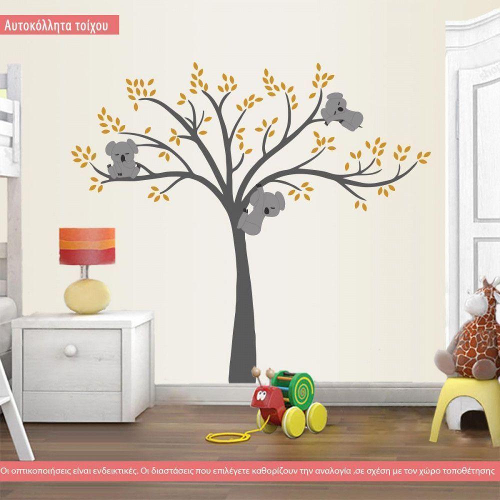 Αυτοκόλλητα τοίχου παιδικά Χαριτωμένα κοάλα, γκρι δέντρο, ολόκληρη παράσταση