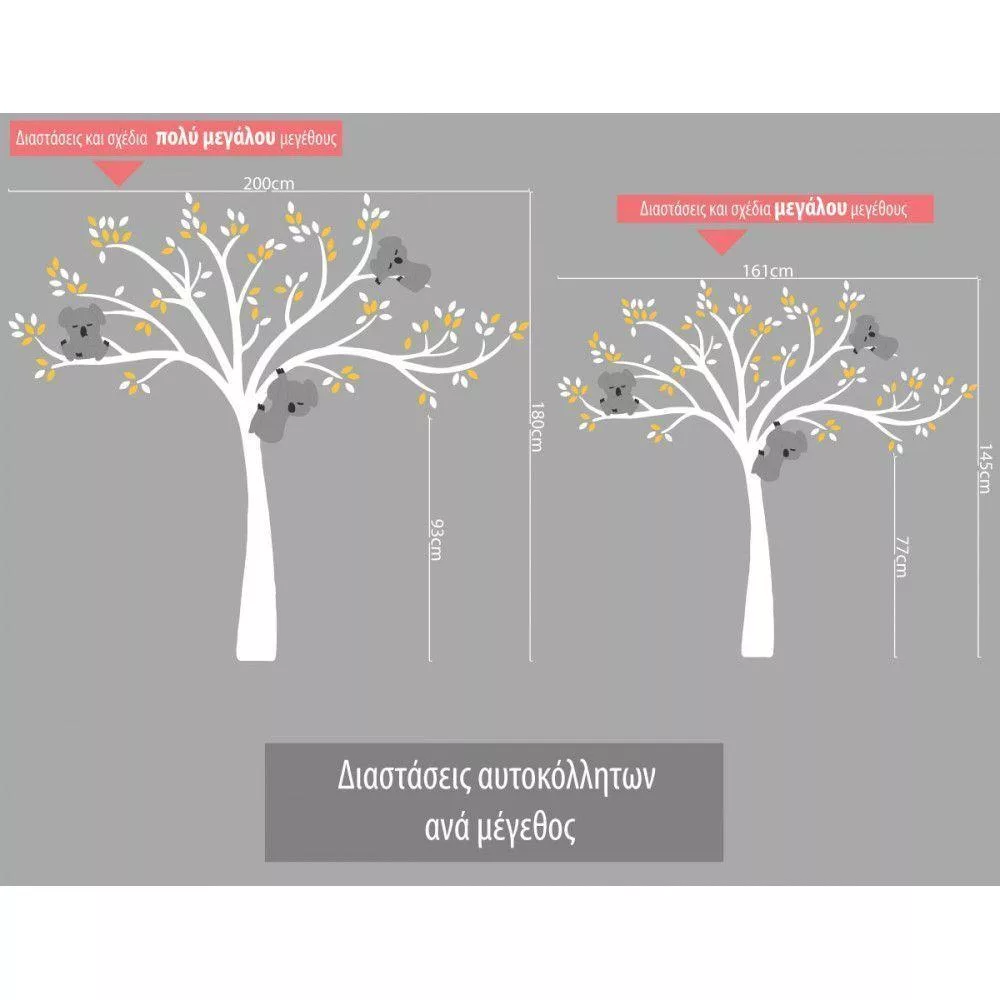 Αυτοκόλλητα τοίχου παιδικά Χαριτωμένα κοάλα, λευκό δέντρο, ολόκληρη παράσταση