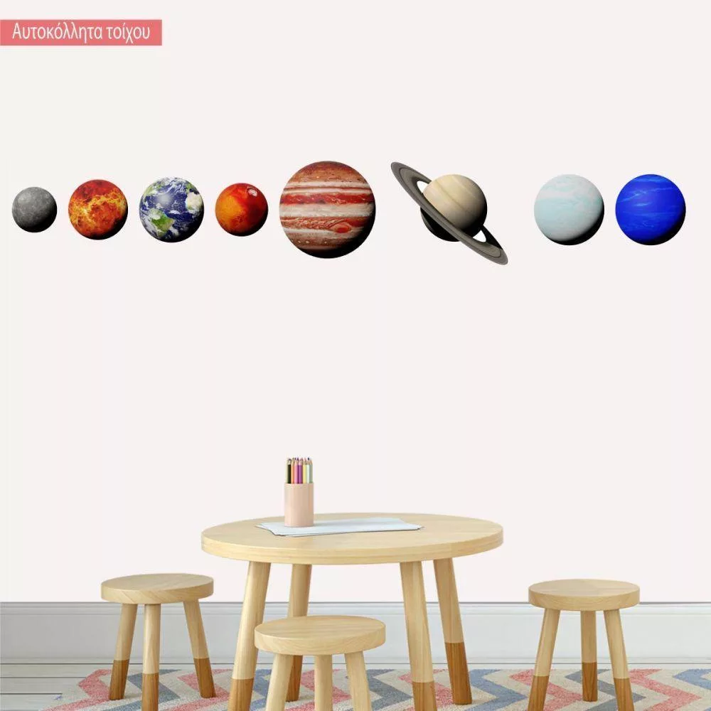 Αυτοκόλλητο τοίχου με φωτορεαλιστικούς πλανήτες