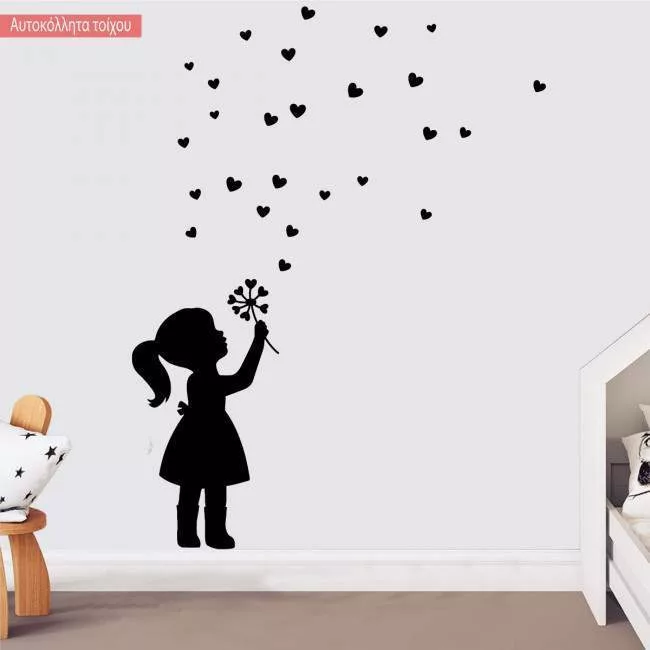 Αυτοκόλλητα τοίχου Κοριτσάκι με λουλούδια καρδιές