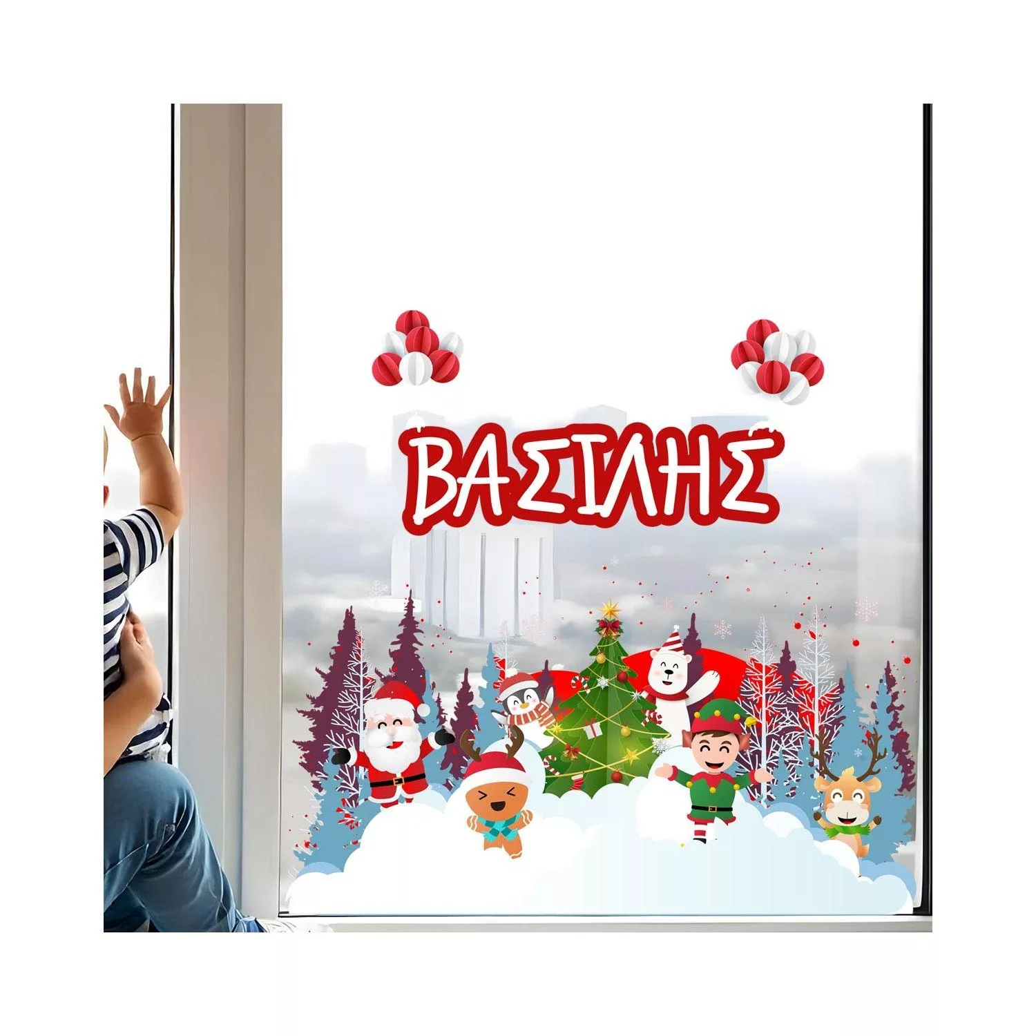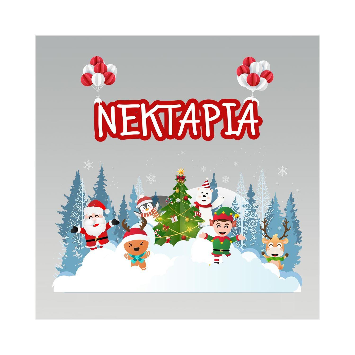 Χριστουγεννάτικο παιδικό αυτοκόλλητο, Άγιος Βασίλης και ξωτικά, προσωποποιημένο όνομα