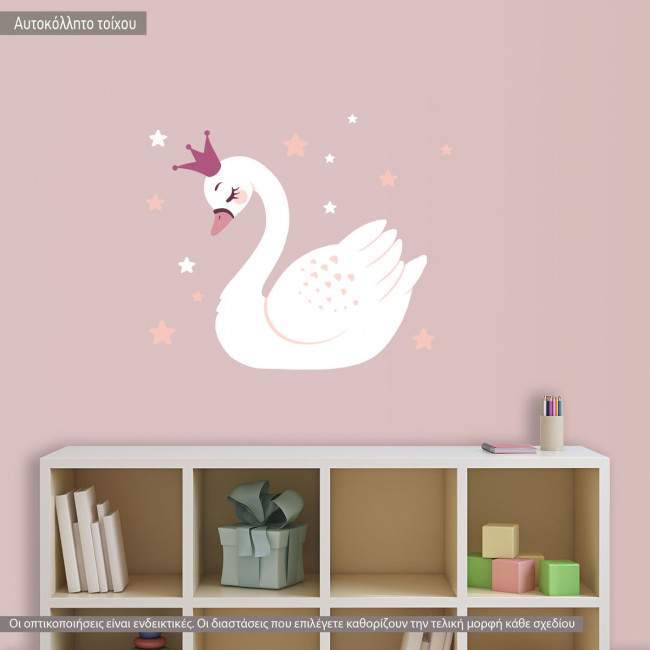 Αυτοκόλλητα τοίχου παιδικά χαριτωμένος κύκνο με όνομα, Cute swan Princess