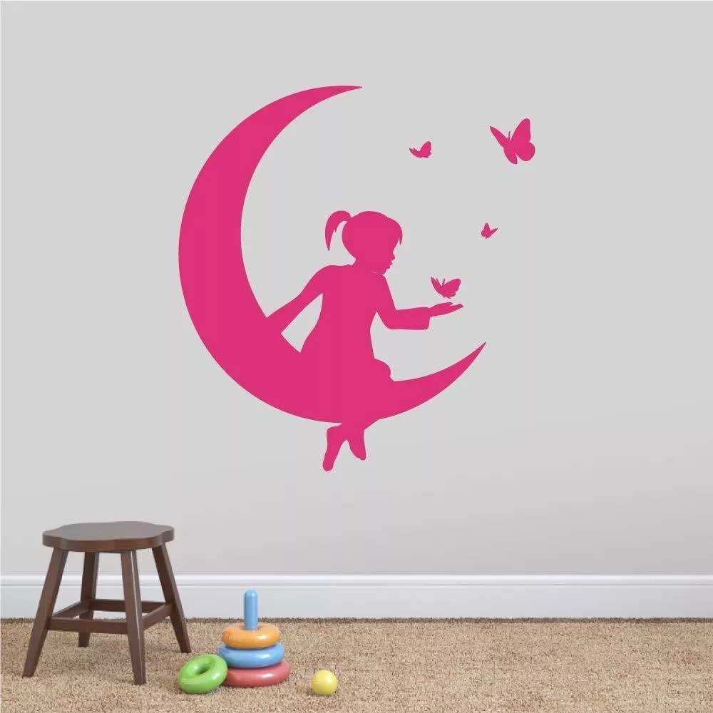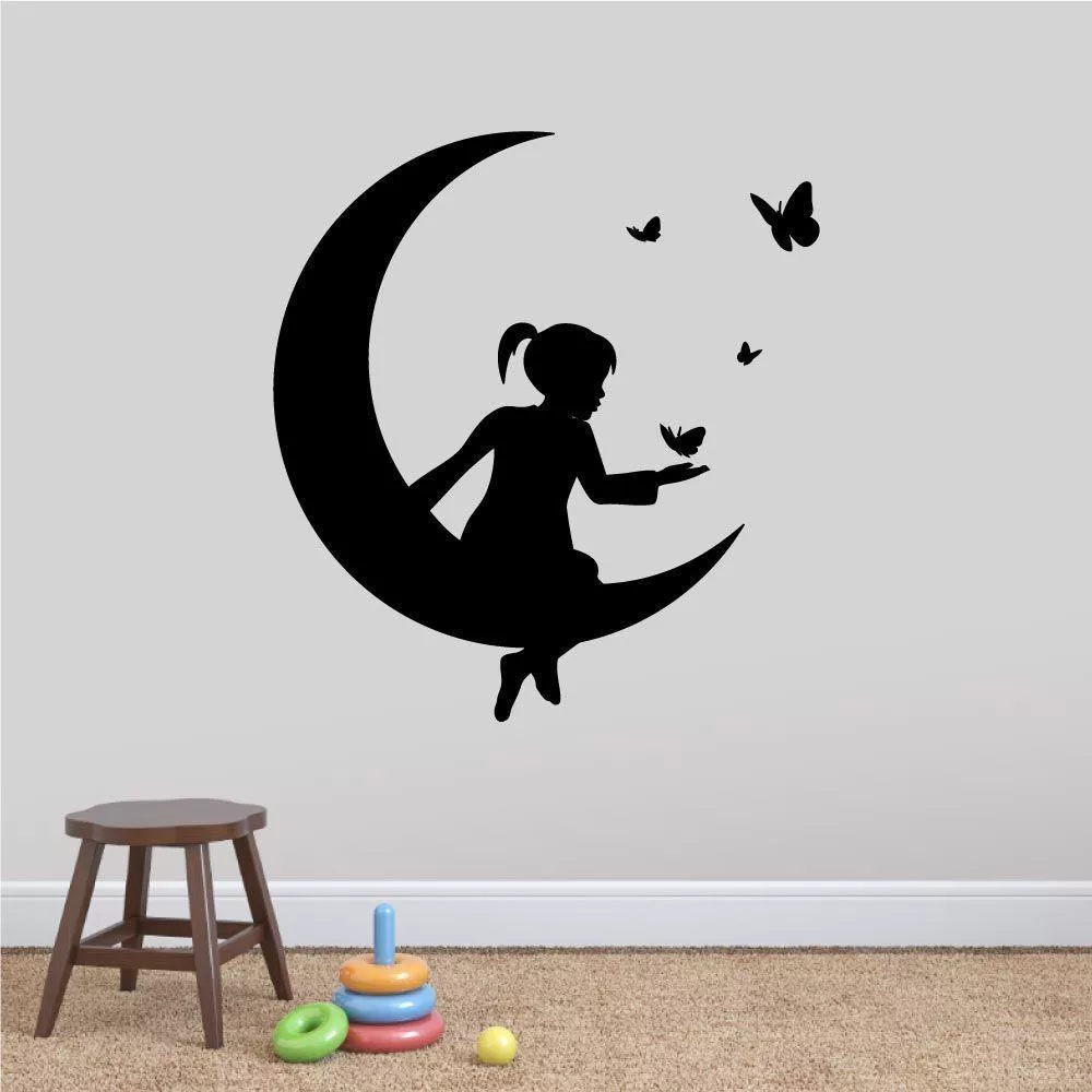 Αυτοκόλλητα τοίχου παιδικά Φεγγάρι και πεταλούδες