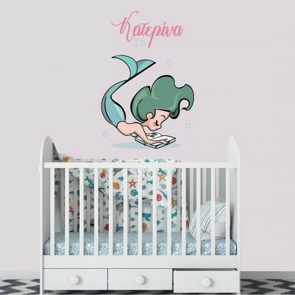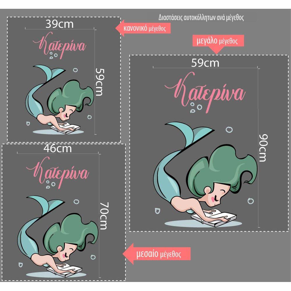 Αυτοκόλλητα τοίχου παιδικά Γοργόνα με όνομα, σχέδιο ΙV
