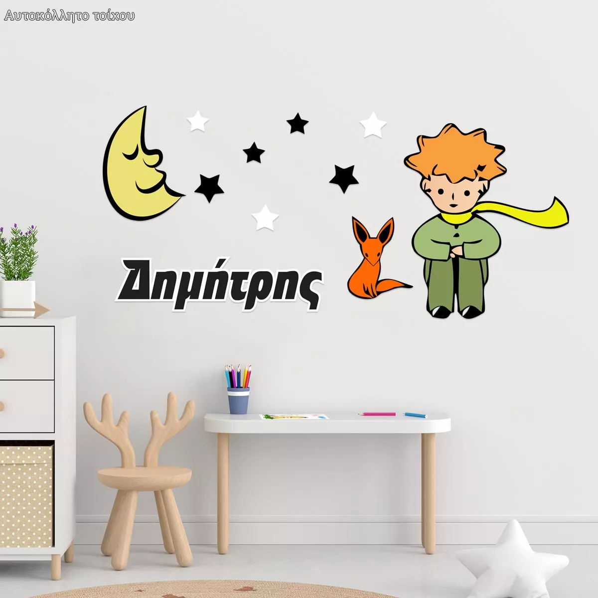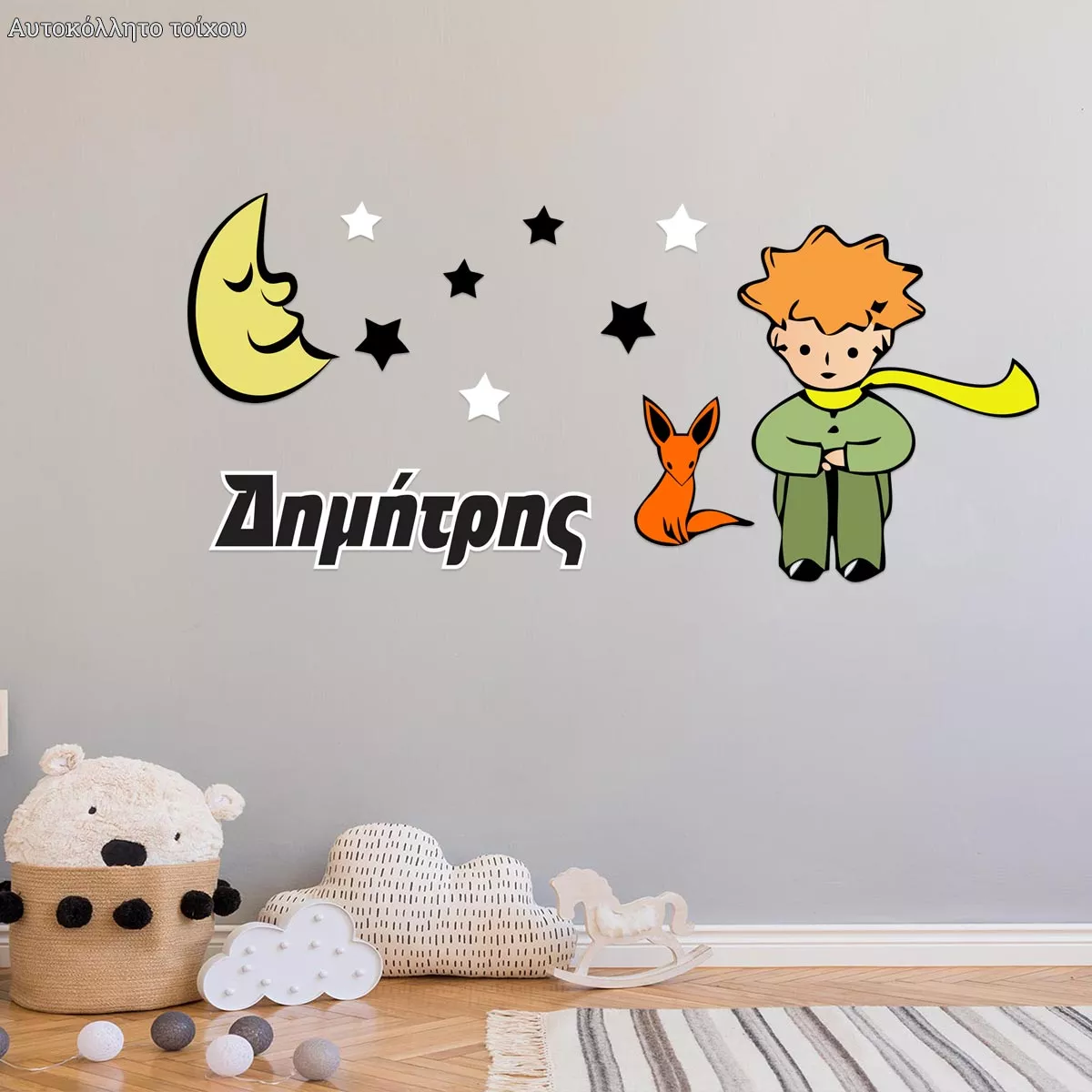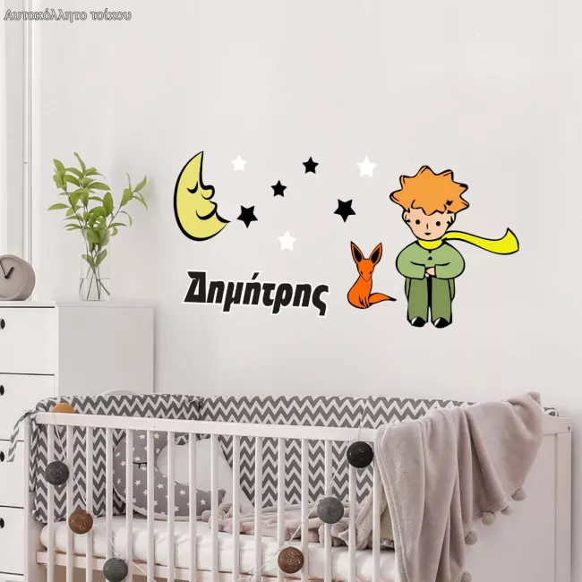Αυτοκόλλητα τοίχου παιδικά Μικρός πρίγκιπας με όνομα, αλεπού και φεγγάρι