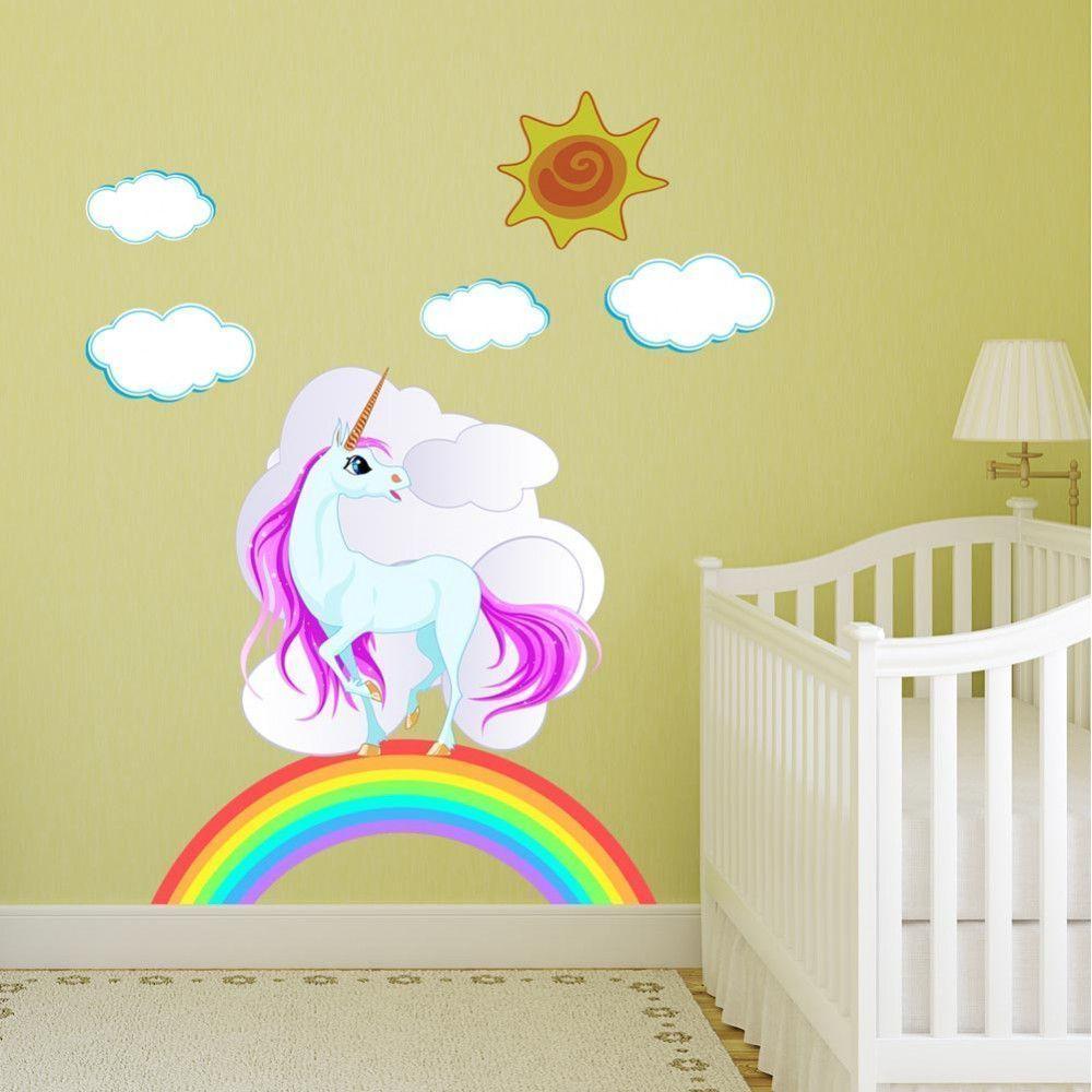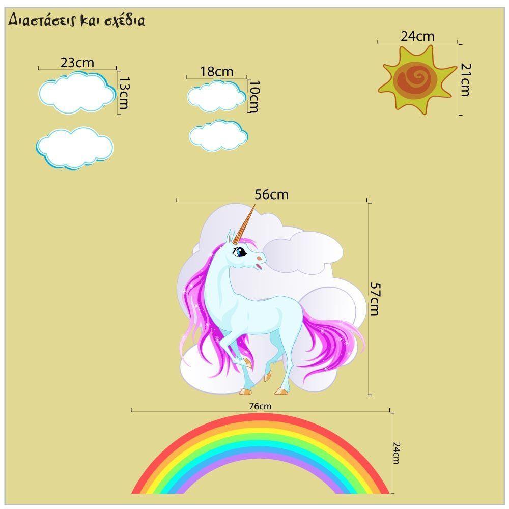 Αυτοκόλλητα τοίχου παιδικά Μονόκερος με Ουράνιο Τόξο