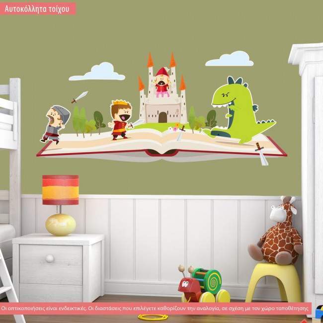 Αυτοκόλλητα τοίχου παιδικά ιππότες κάστρο και δράκος