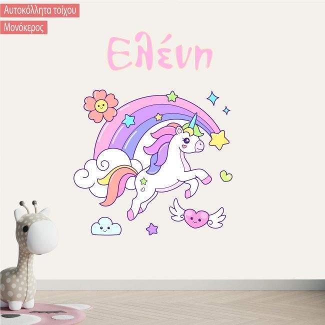 Αυτοκόλλητα τοίχου παιδικά Μονόκερος με Ουράνιο Τόξο