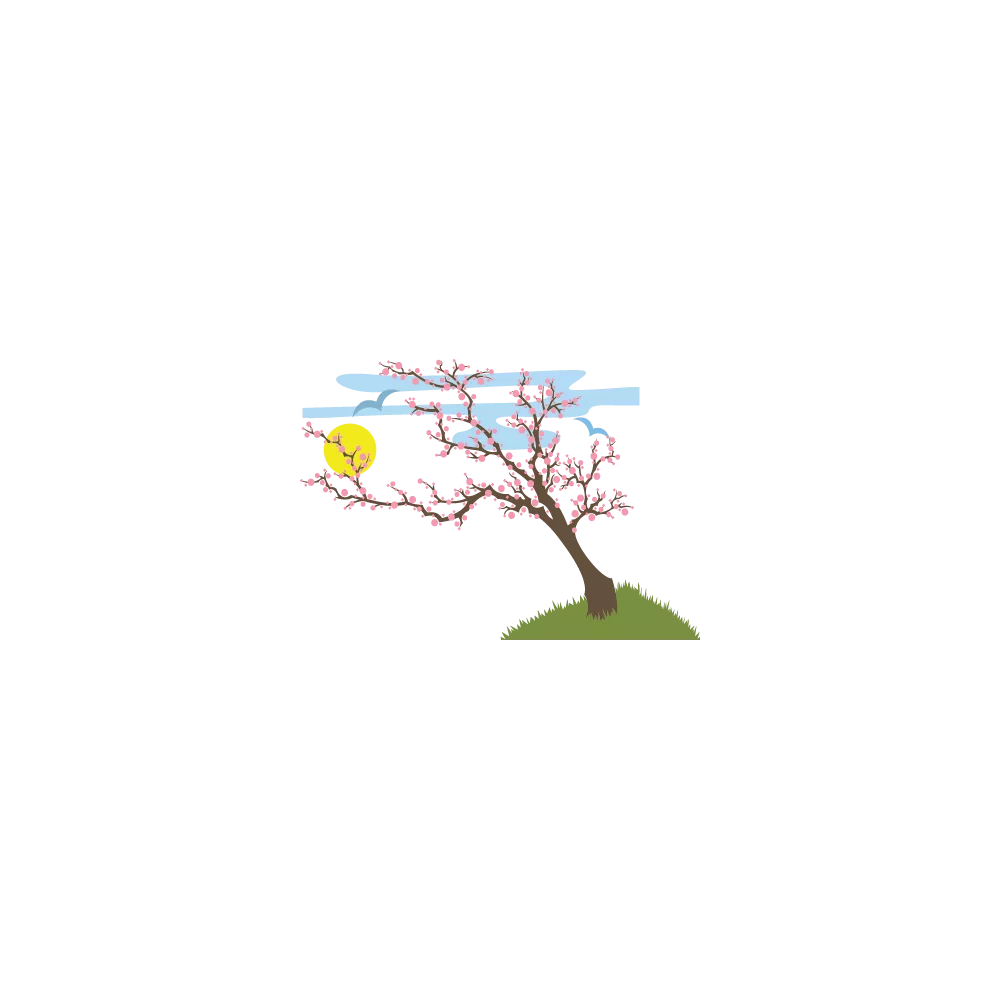 Αυτοκόλλητο τοίχου ανθισμένο δέντρο, ουρανός ήλιος και πουλιά, Ανοιξιάτικο τοπίο