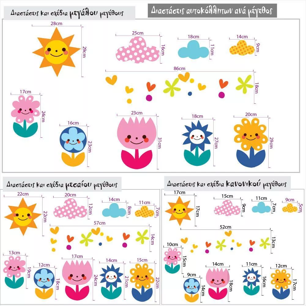 Αυτοκόλλητα τοίχου παιδικά Χαμογελαστά λουλούδια