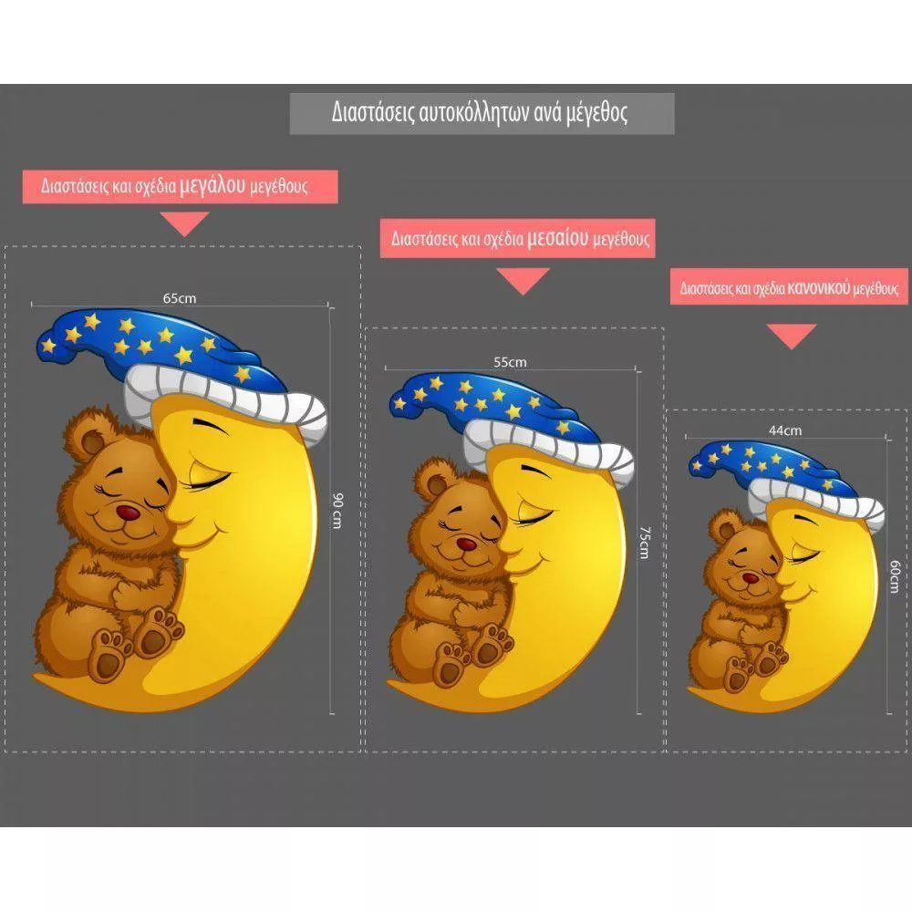 Αυτοκόλλητο τοίχου, αρκουδάκι και φεγγάρι