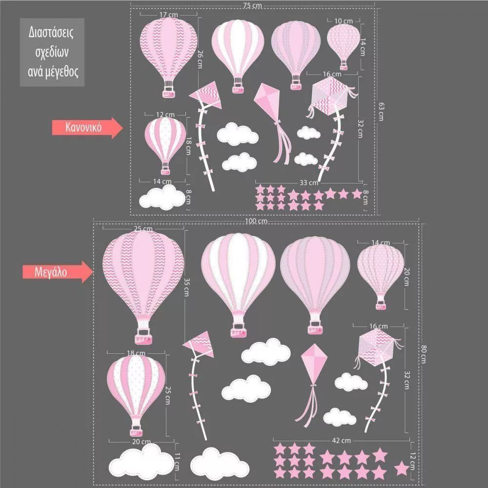 Αυτοκόλλητα τοίχου παιδικά αερόστατα, χαρταετοί και αστέρια, Balloons in the night sky...