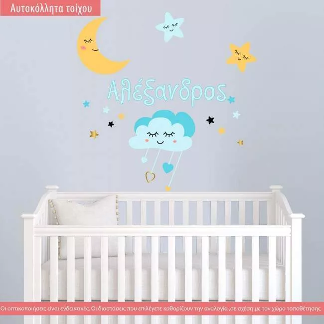 Αυτοκόλλητα τοίχου παιδικά Νυσταγμένος ουρανός με όνομα.