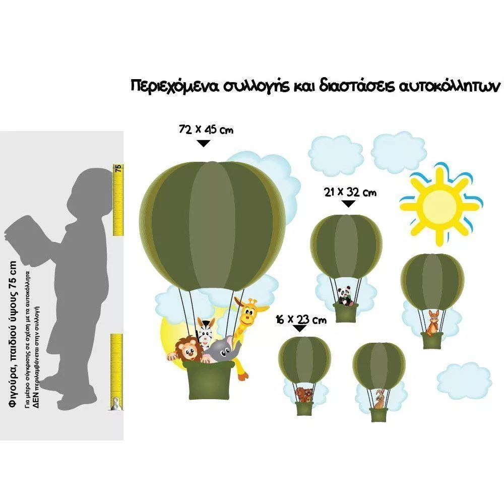 Αυτοκόλλητο τοίχου αερόστατα, ζωάκια, Βόλτα με αερόστατο (earth green)