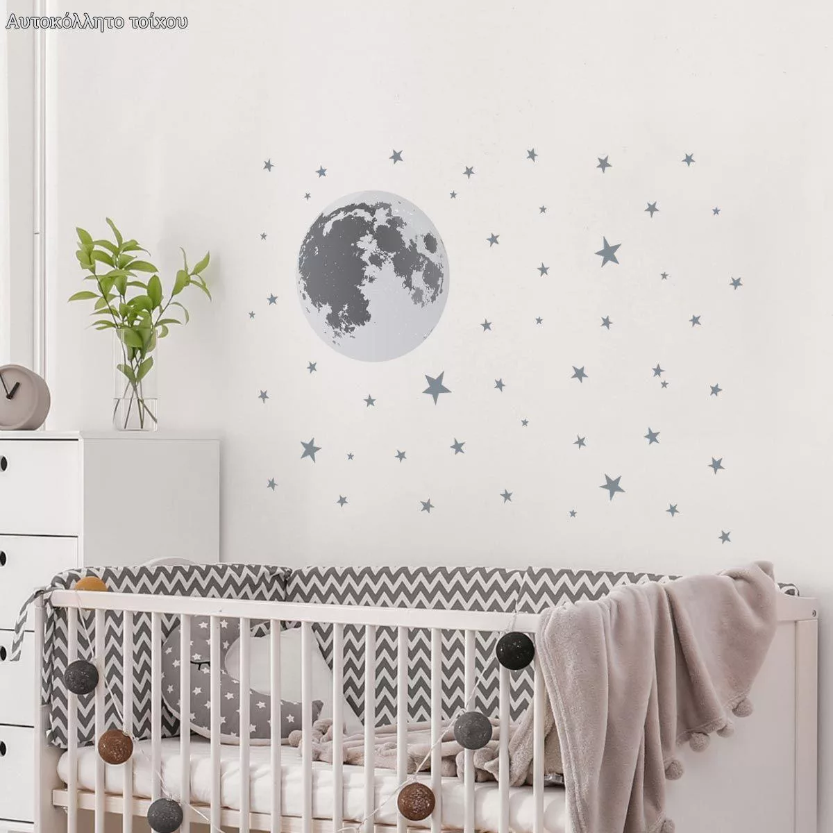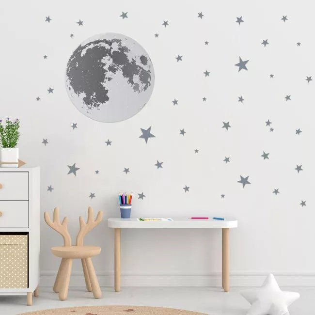 Πίνακας παιδικός σε καμβά Reach for the stars, ελεφαντάκι στα αστέρια με όνομα