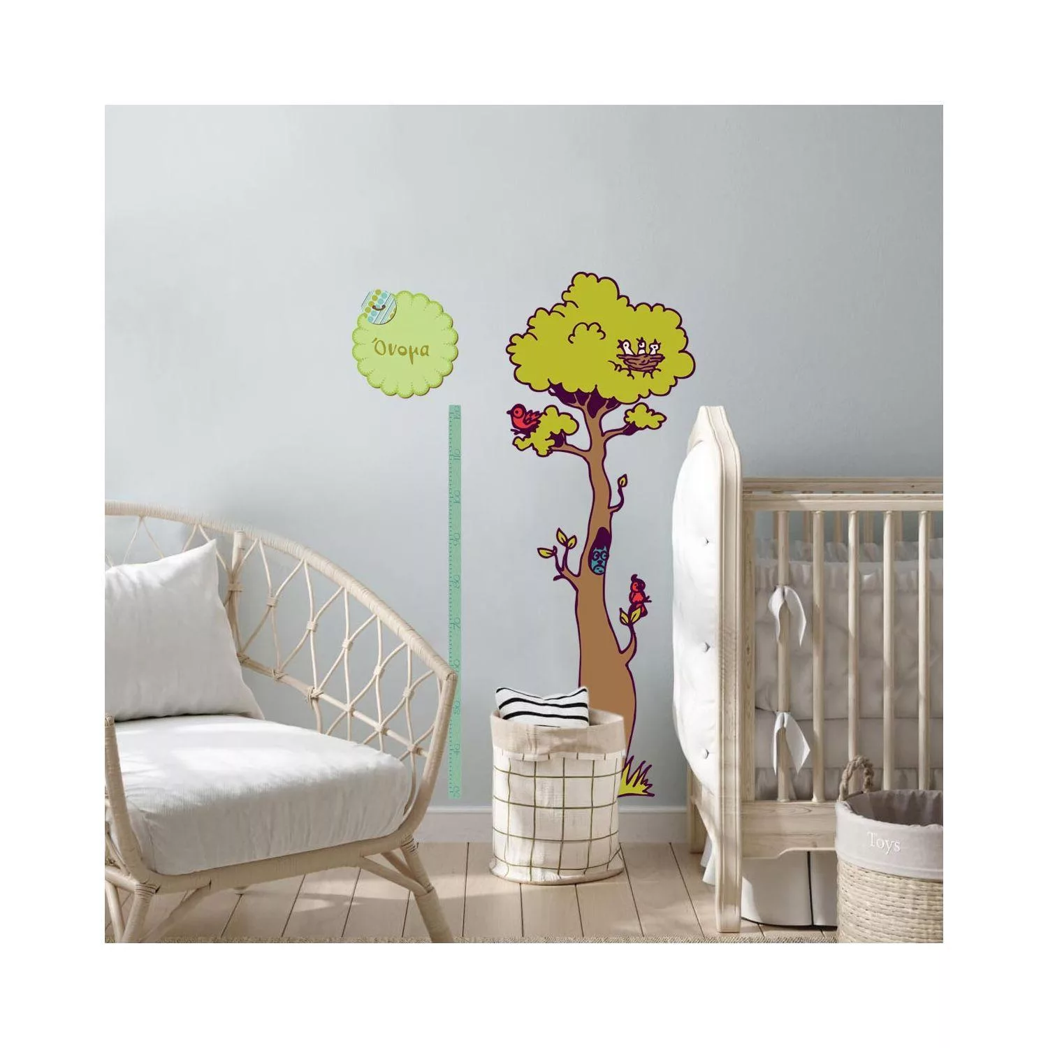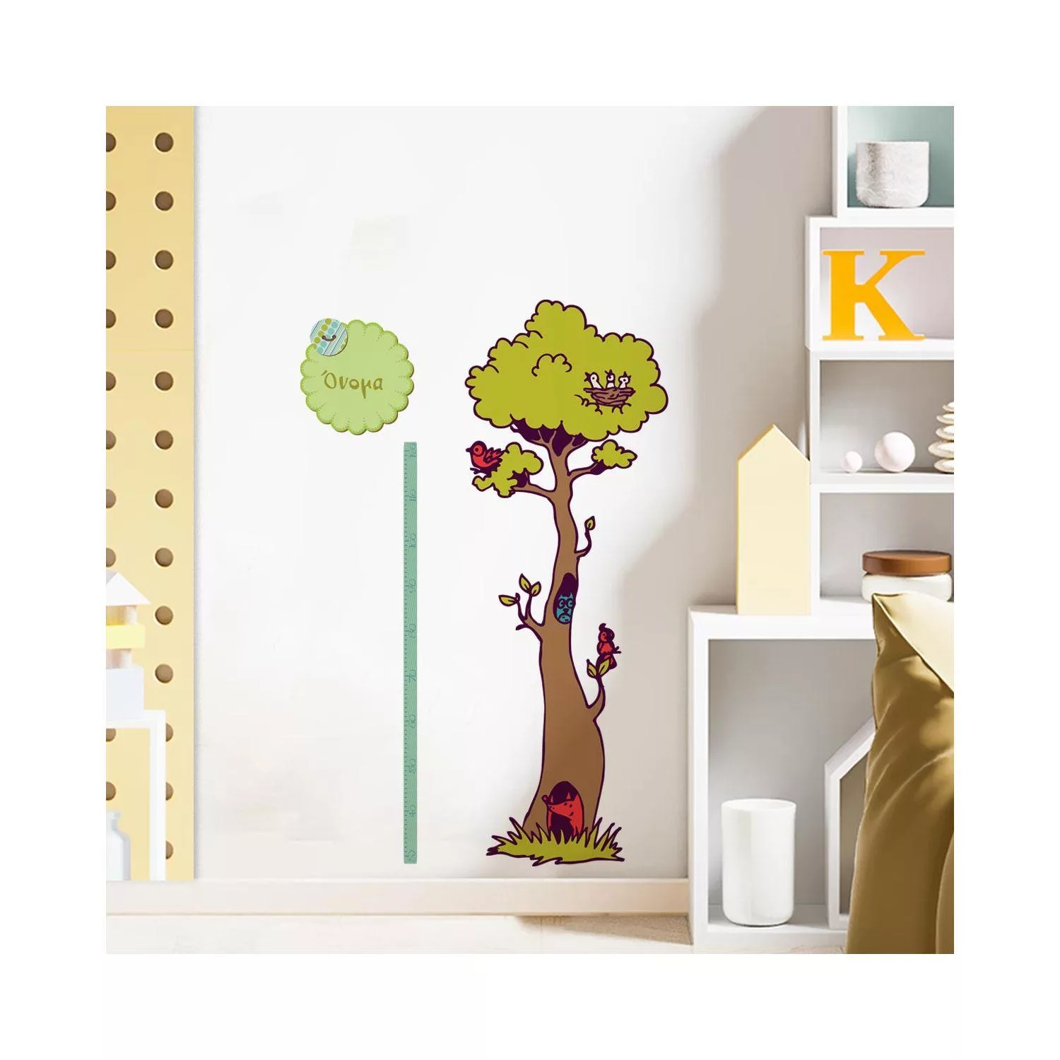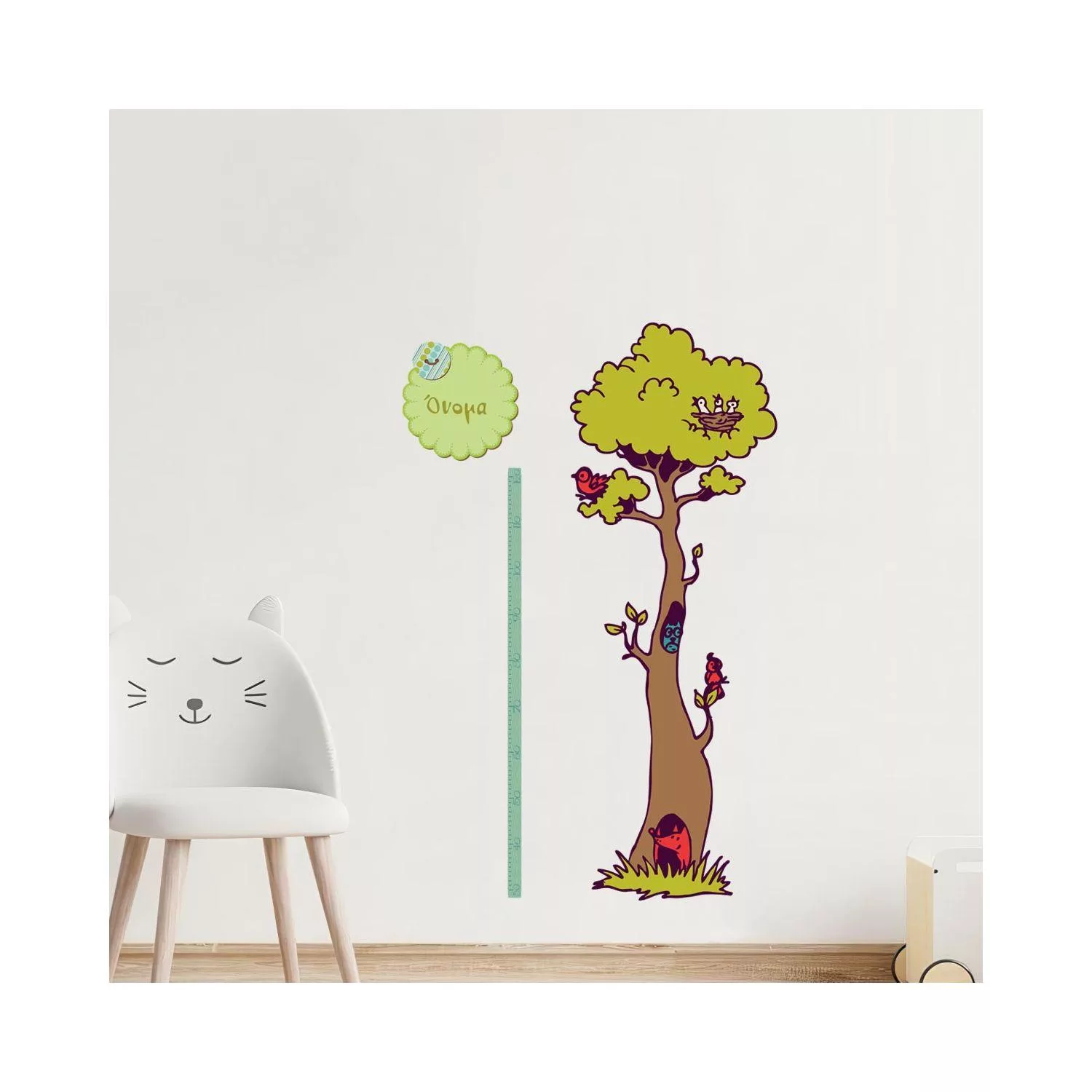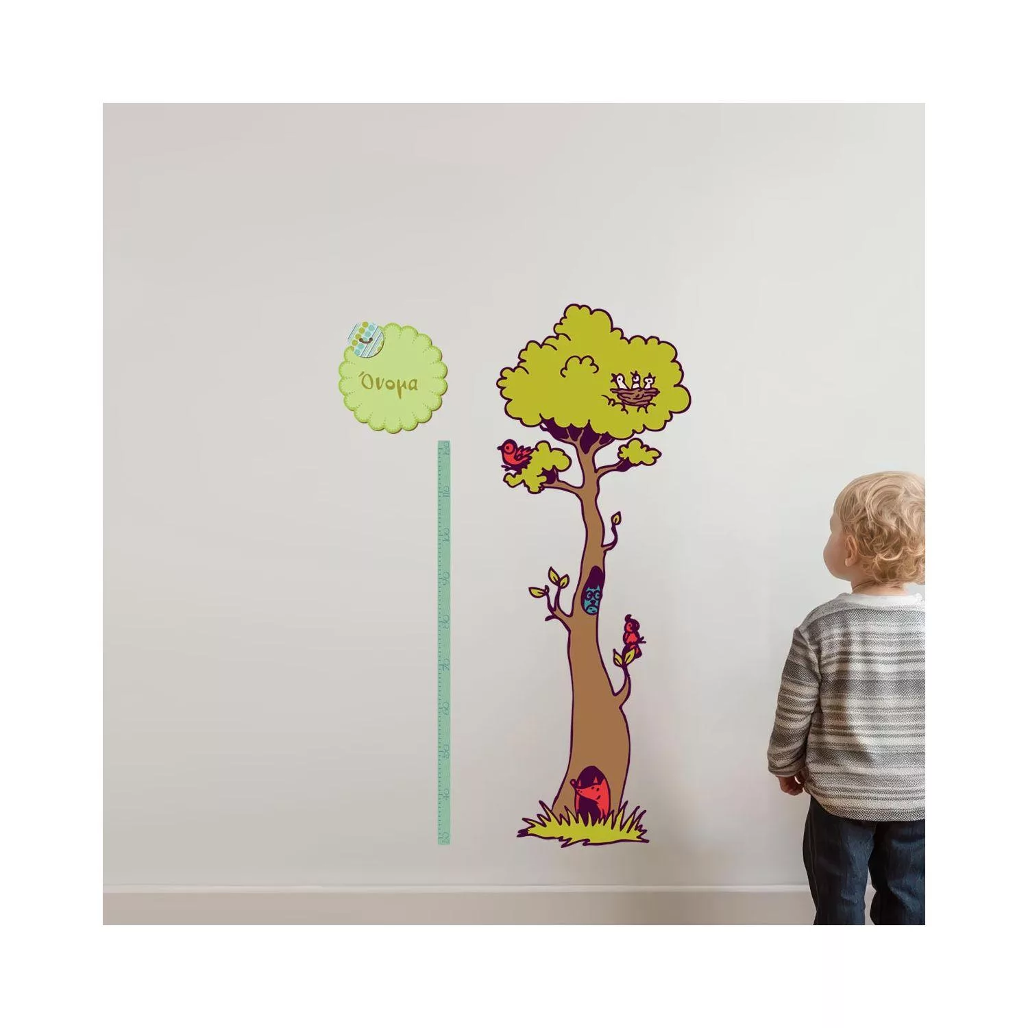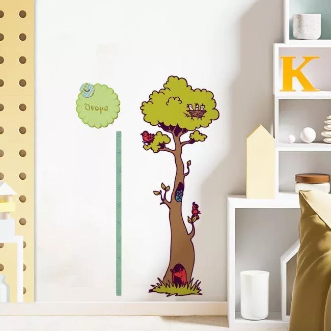 Αναστημόμετρο, υψομετρητής, δέντρο, πλουλάκι, και όνομα. Στο δάσος με φίλους, αυτοκόλλητο τοίχου