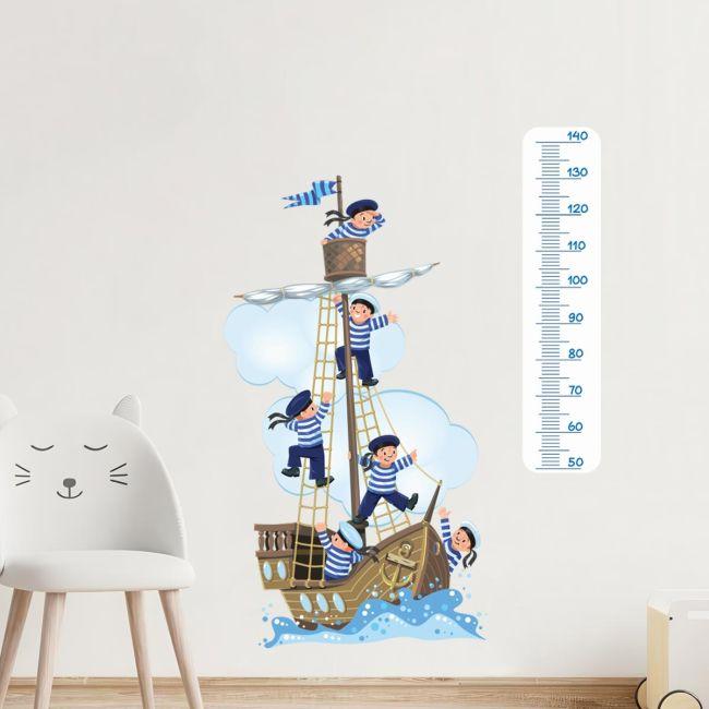 Αναστημόμετρο, υψομετρητής, Ναύτες και ξύλινο καράβι. Χαρούμενοι ναύτες , αυτοκόλλητο τοίχου
