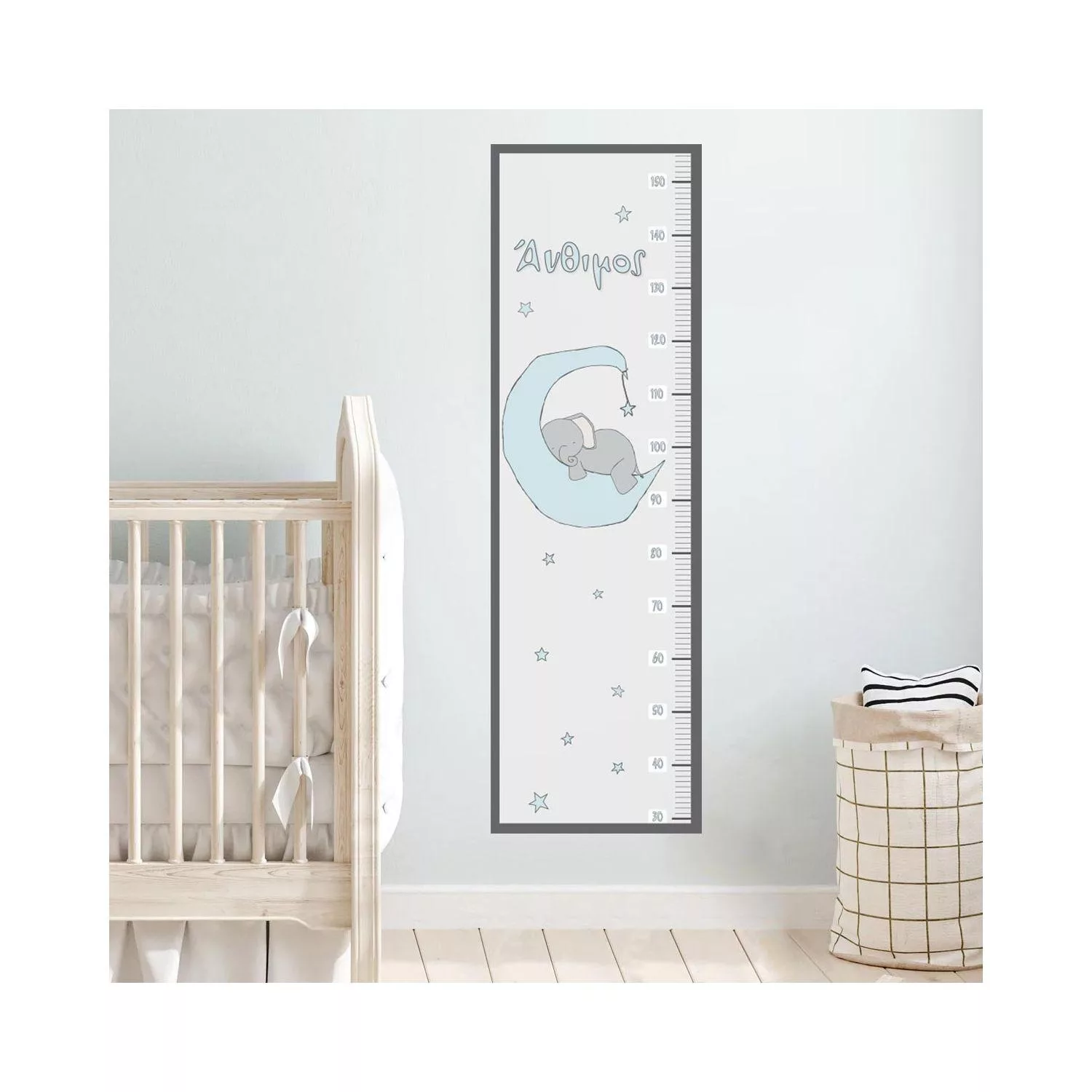 Πίνακας παιδικός σε καμβά Ελεφαντάκι στο φεγγάρι, με όνομα