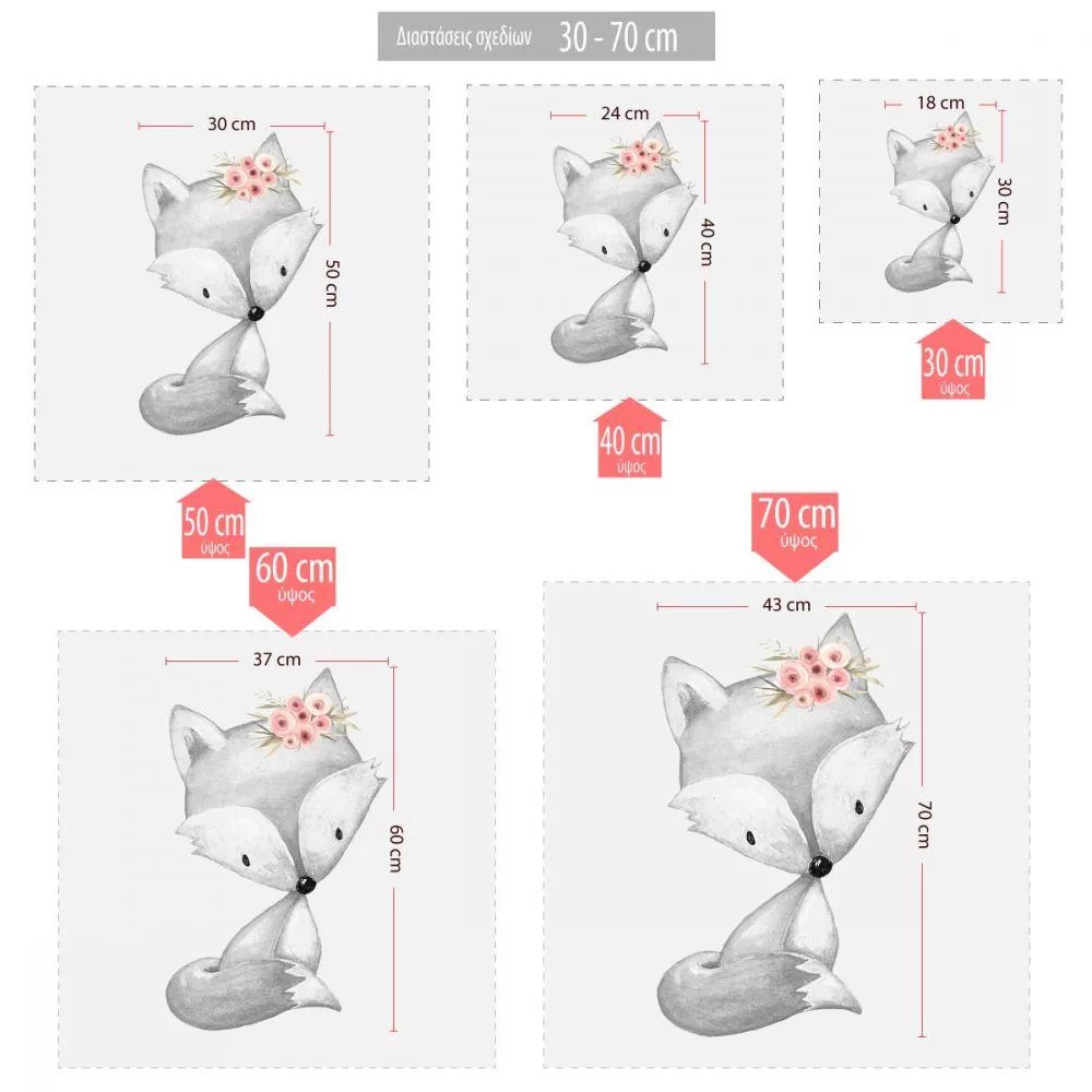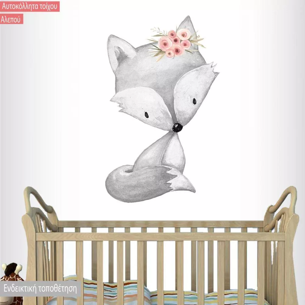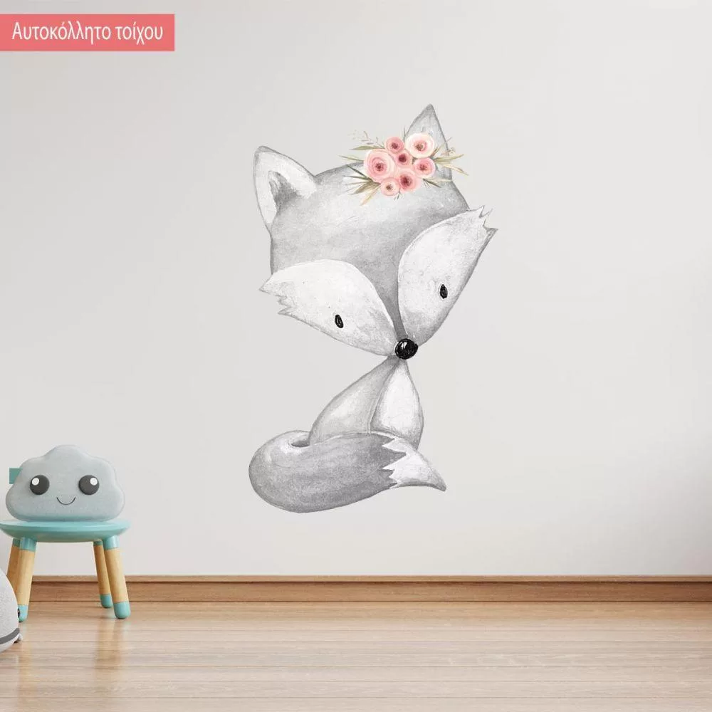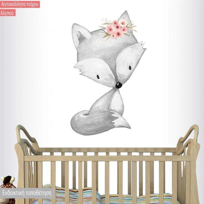 Παιδικό αυτοκόλλητο, Αλεπουδάκι gray pink watercolor