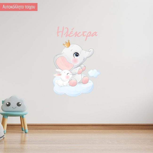 Παιδικό αυτοκόλλητο, Ελεφαντάκι και κουνελάκι στα σύννεφα