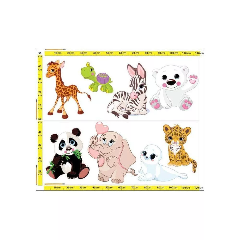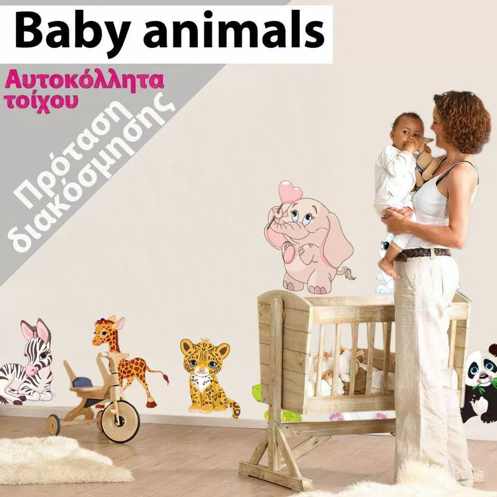 Αυτοκόλλητο τοίχου πάντα ζέβρα, λεοπάρδαλη, ελέφαντας και καμηλοπάρδαλη. Baby animals